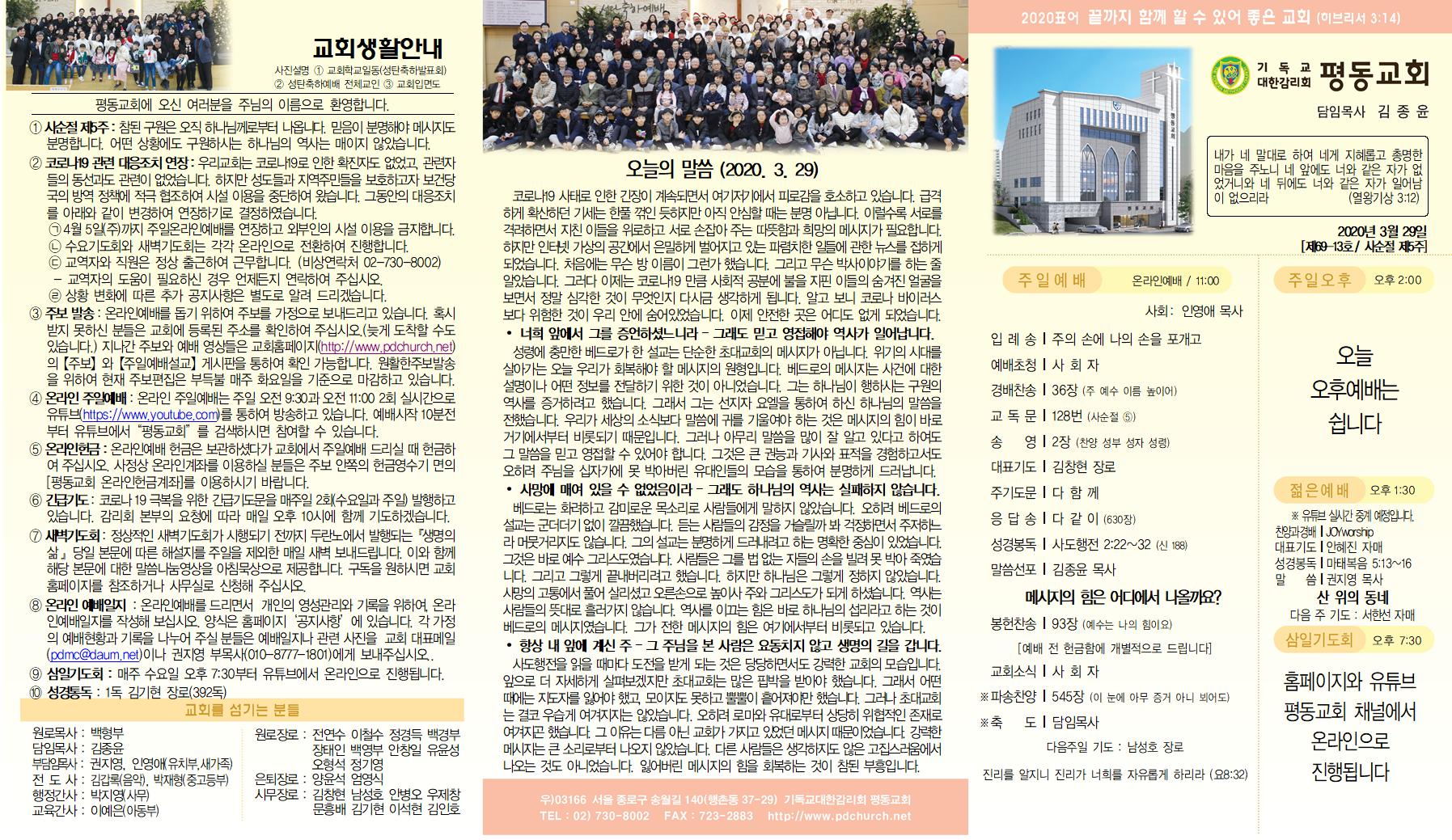 3월 5주(29일) 교회소식