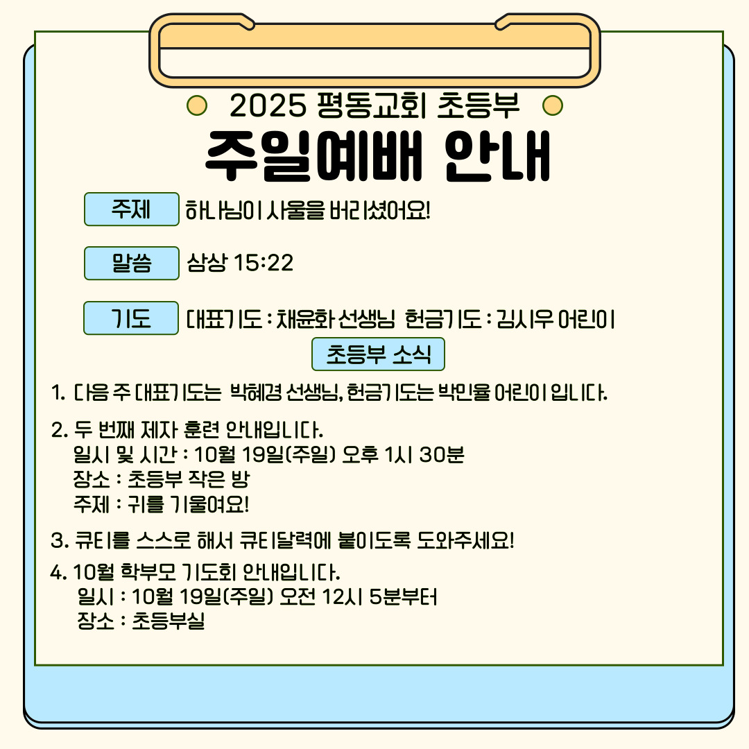 2025.10.19 초등부 예배 & 점심전 기도회