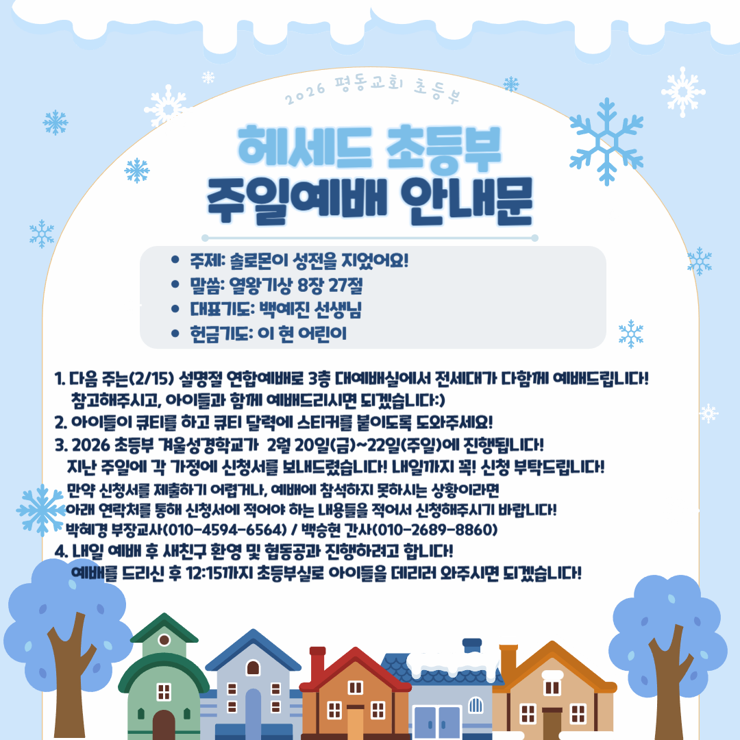 2026년 초등부 겨울성경학교 일정표 안내