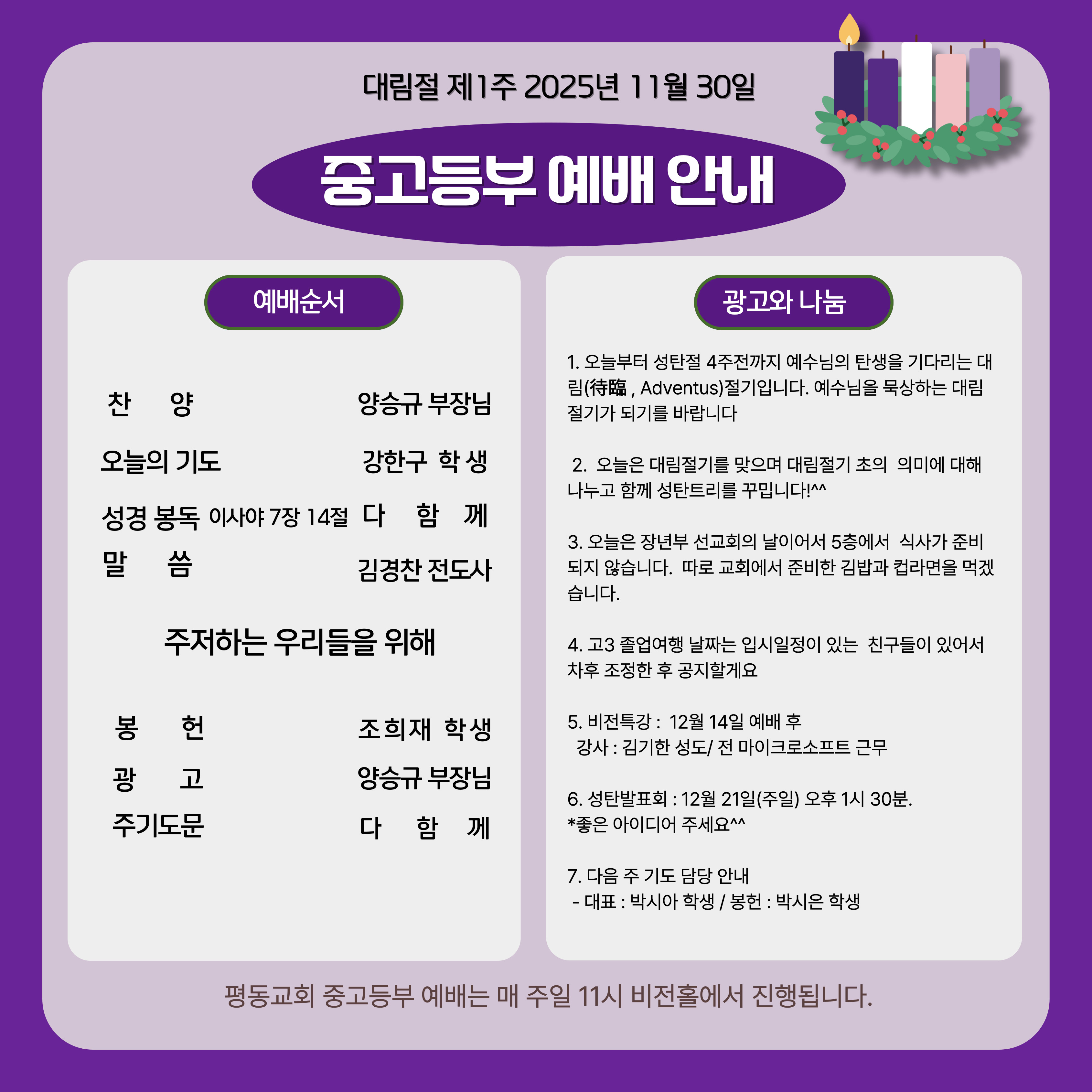 12월 7일 주일예배