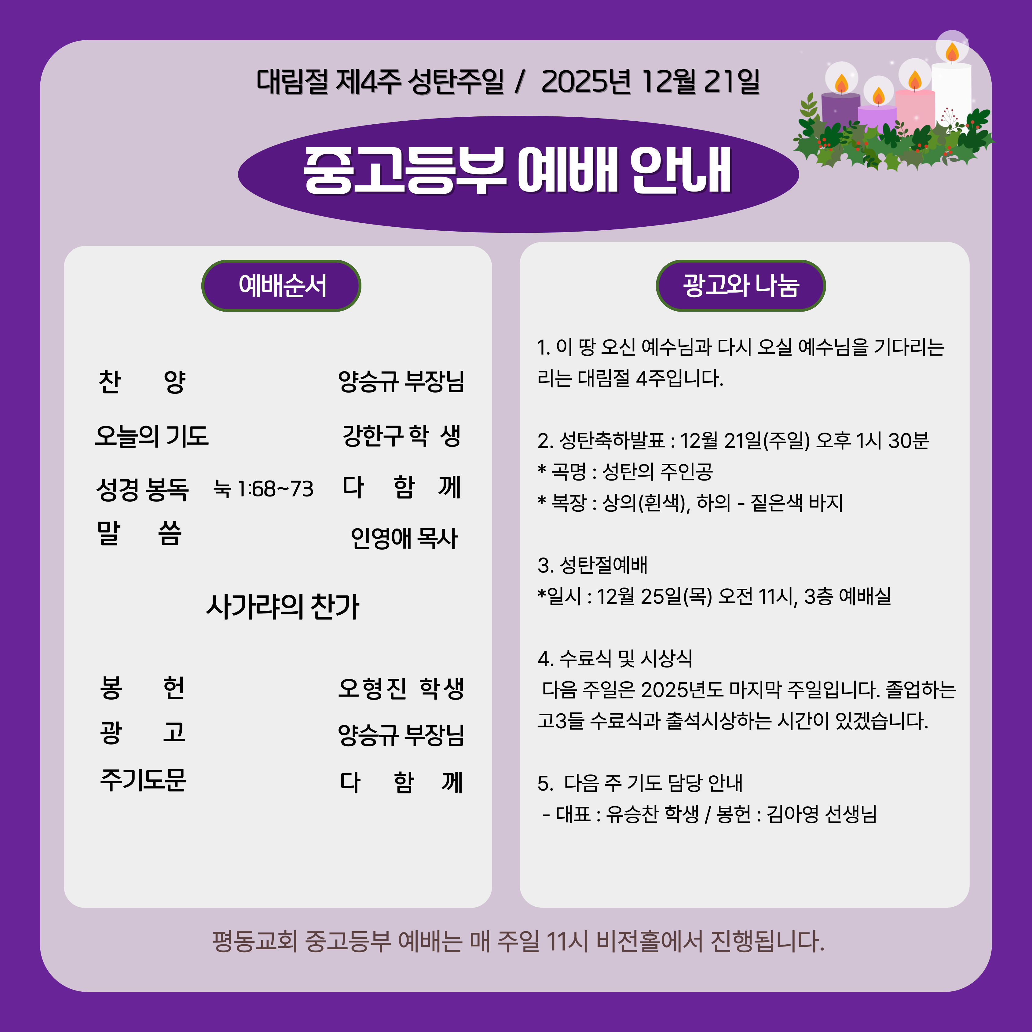 12월 21일 중고등부 예배