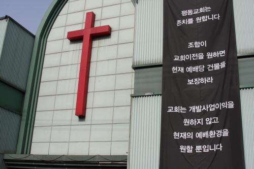 이에 평동교회 측은 “교회는 도시환경정비사업에 대한 이익을 얻는 것이 아니고, 조합이 추진하는 개발 사업을 위해 원하지 않지만 외곽지역으로 이전하는 것”이라는 내용을 전제해 “기존교회의 건축면적만큼 신축해주는 것은 당연한 것”이라고 조건을 붙였다.