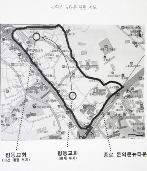평동교회가 위치한 지역은 현재 도시환경정비사업 추진과정에 포함된 상태다. 이번 정비사업은 2004년부터 개발계획이 시작된 돈의문 뉴타운 사업이다.