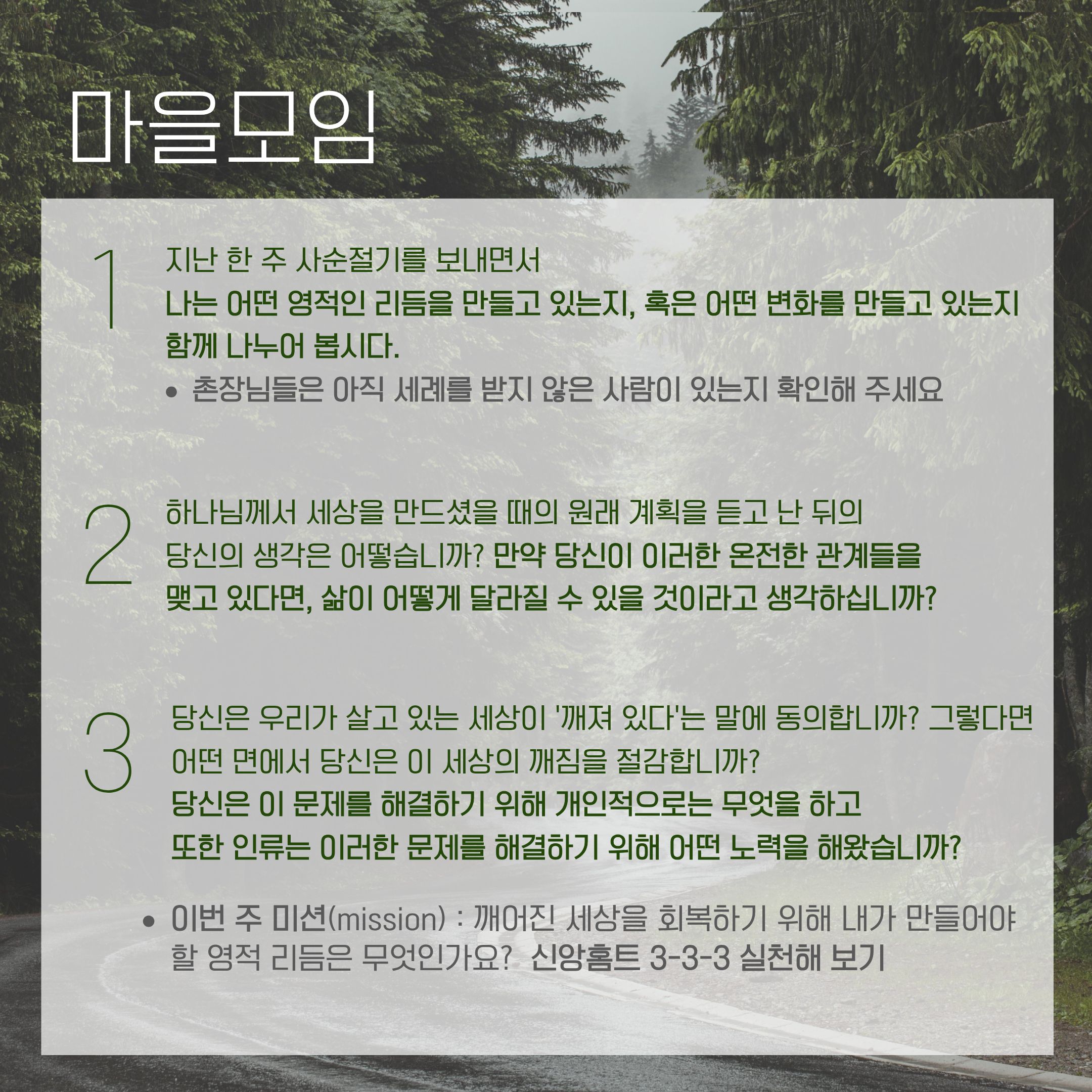 2026년 3월 셋째주 청년부 주보