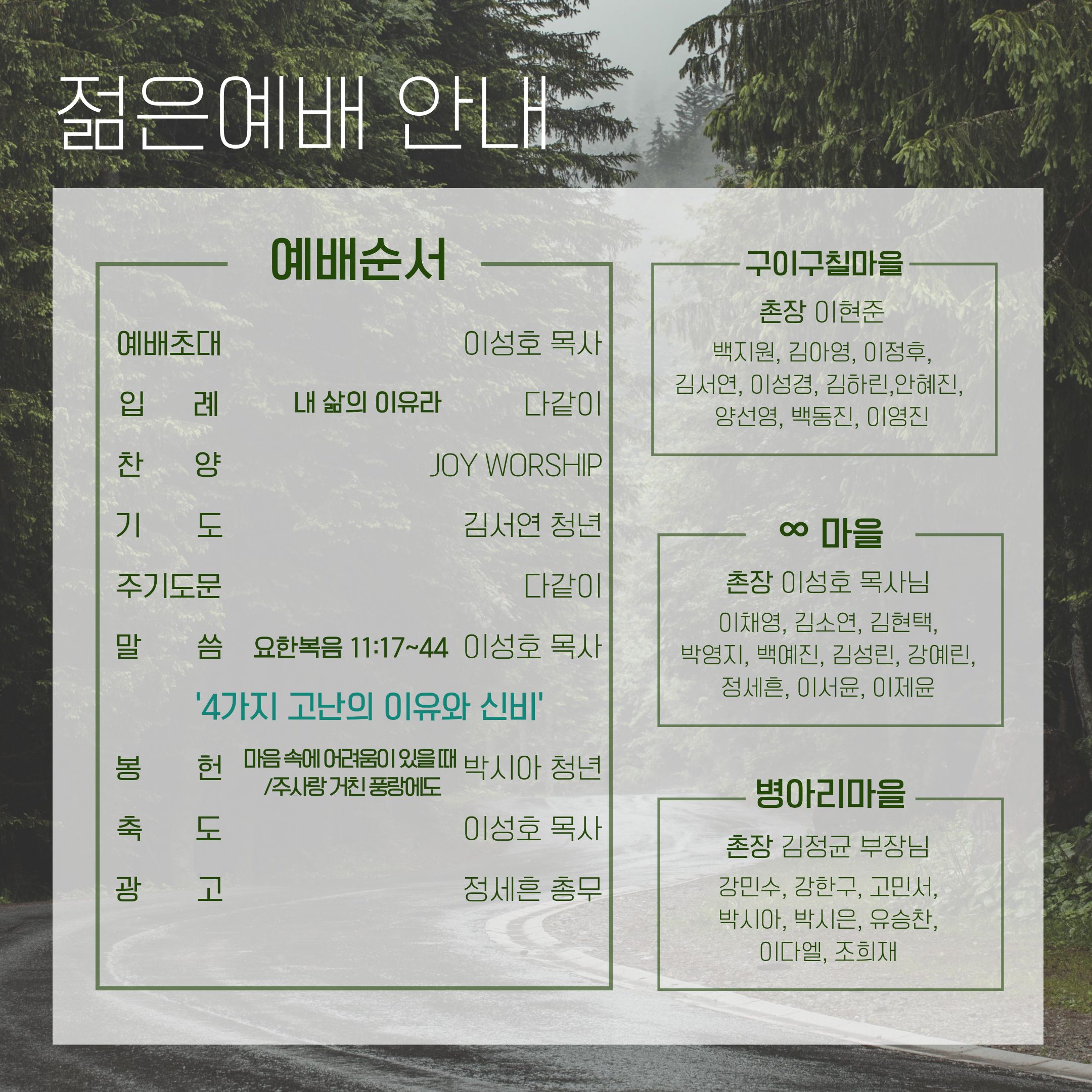 2026년 3월 셋째주 청년부 주보