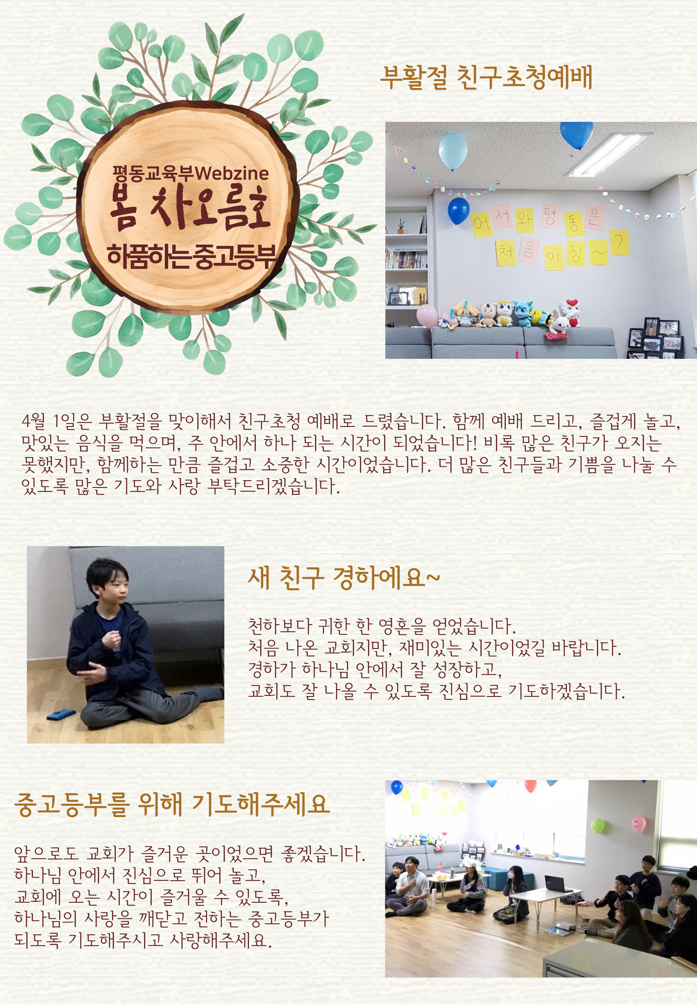평동교회 교회학교 봄 차오름호 웹진이 발간되었습니다. ^^