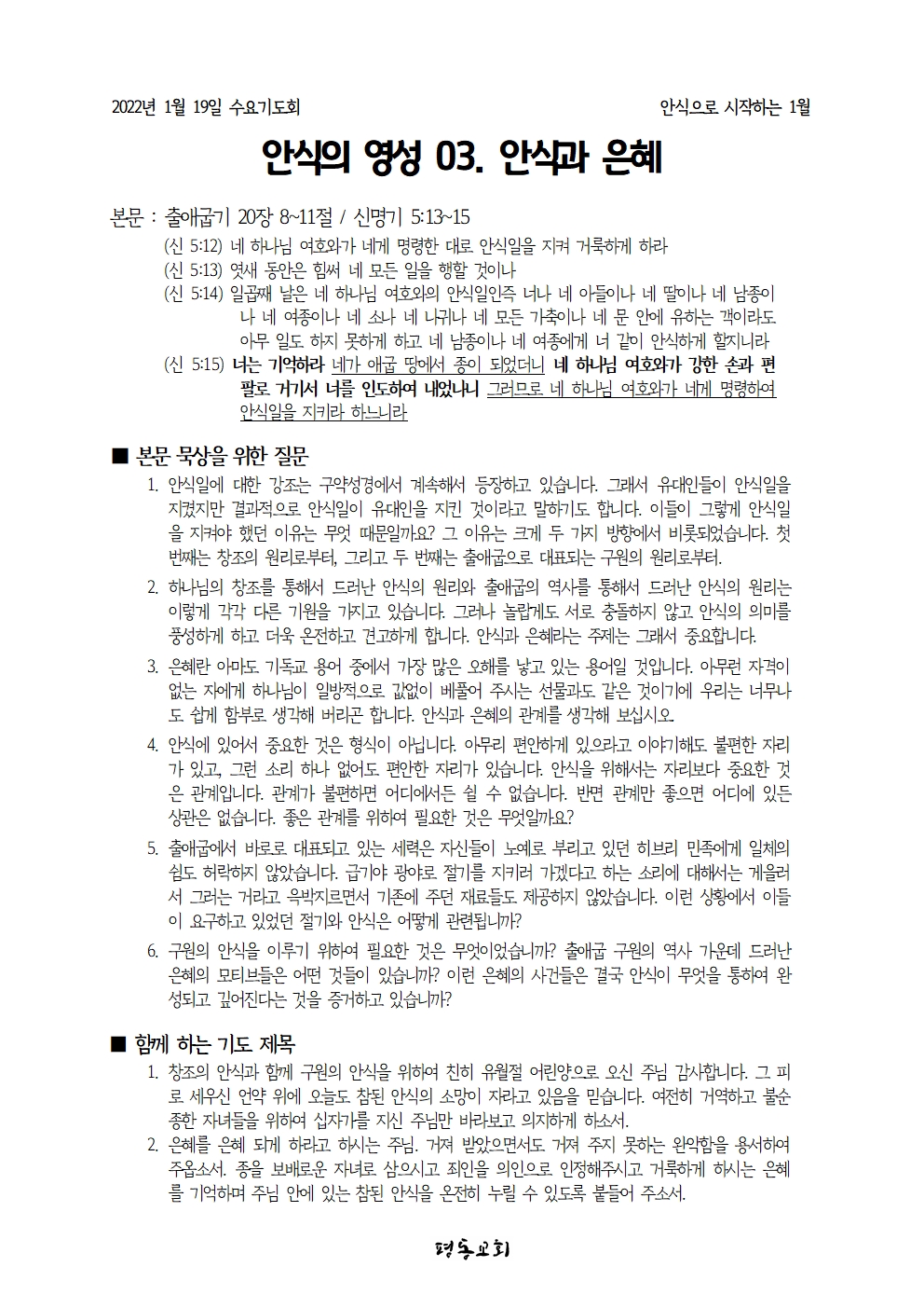 1월 19일 안식의 영성 3.은혜
