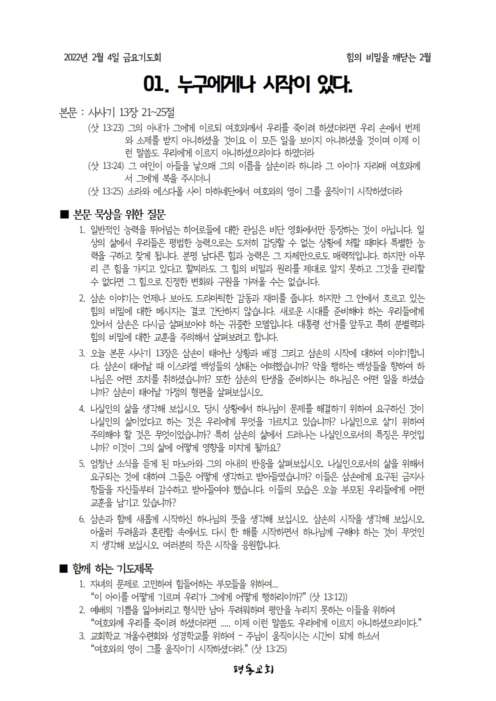 2월 4일 금요기도회