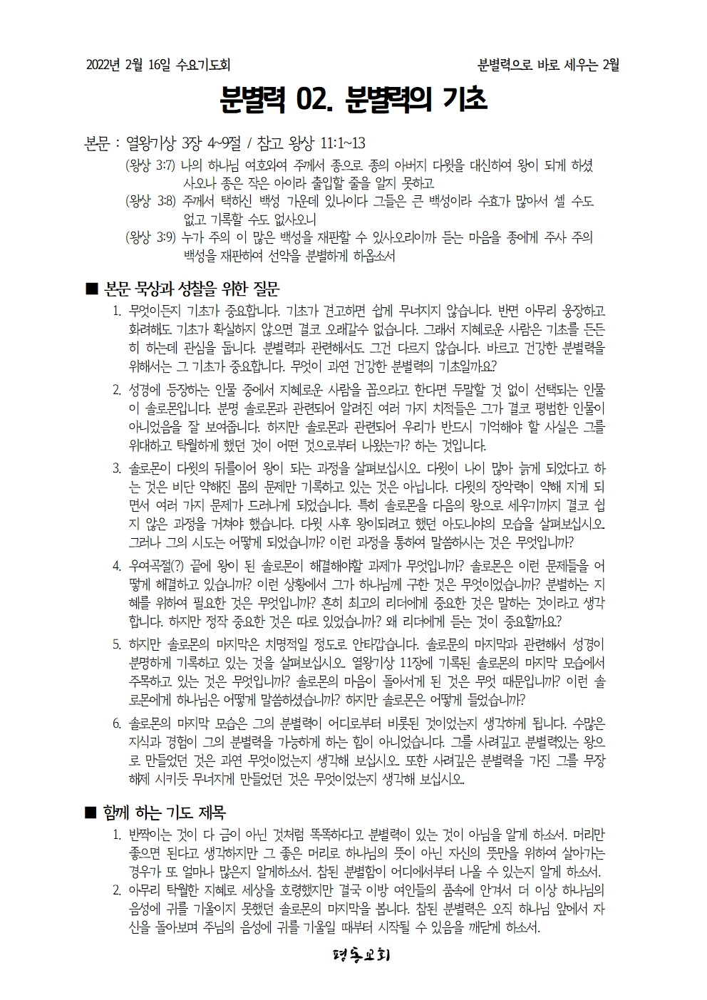 2월 16일 수요기도회 _ 분별력 02