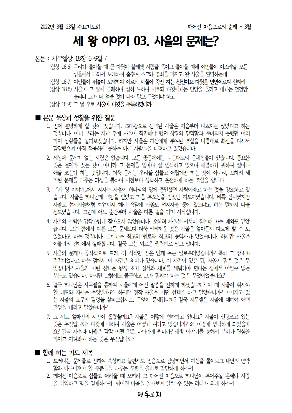 3월 23일 수요기도회