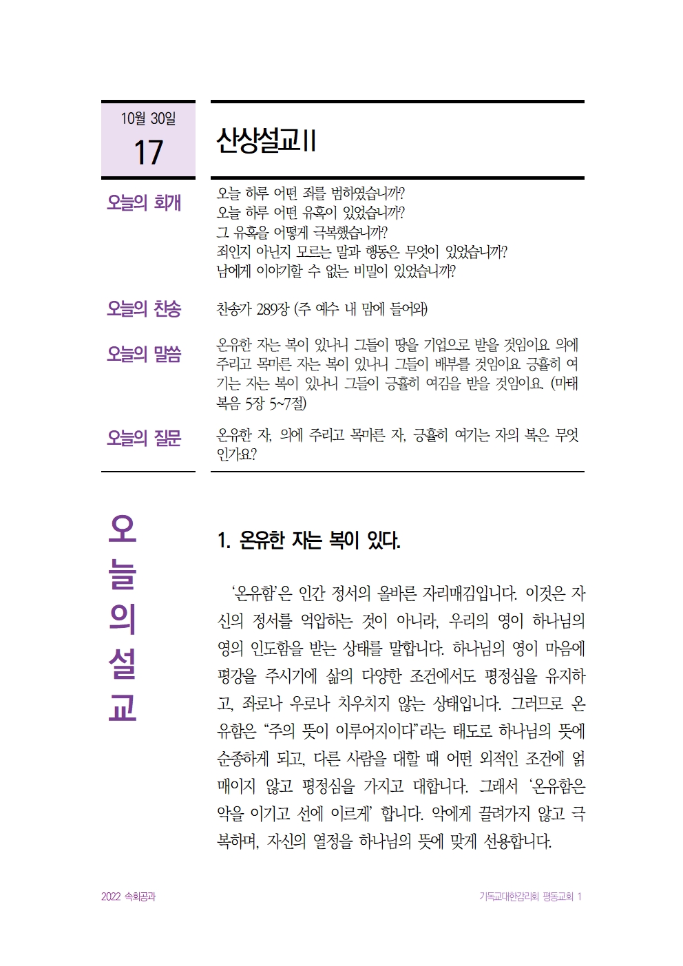표준설교 17. 산상설교 (2)