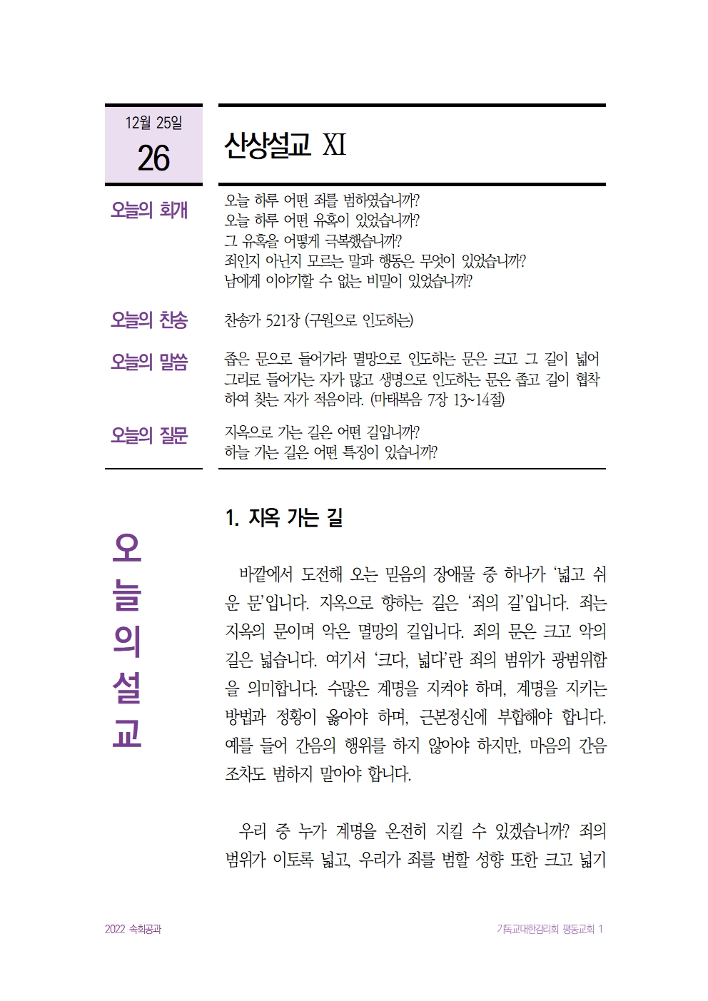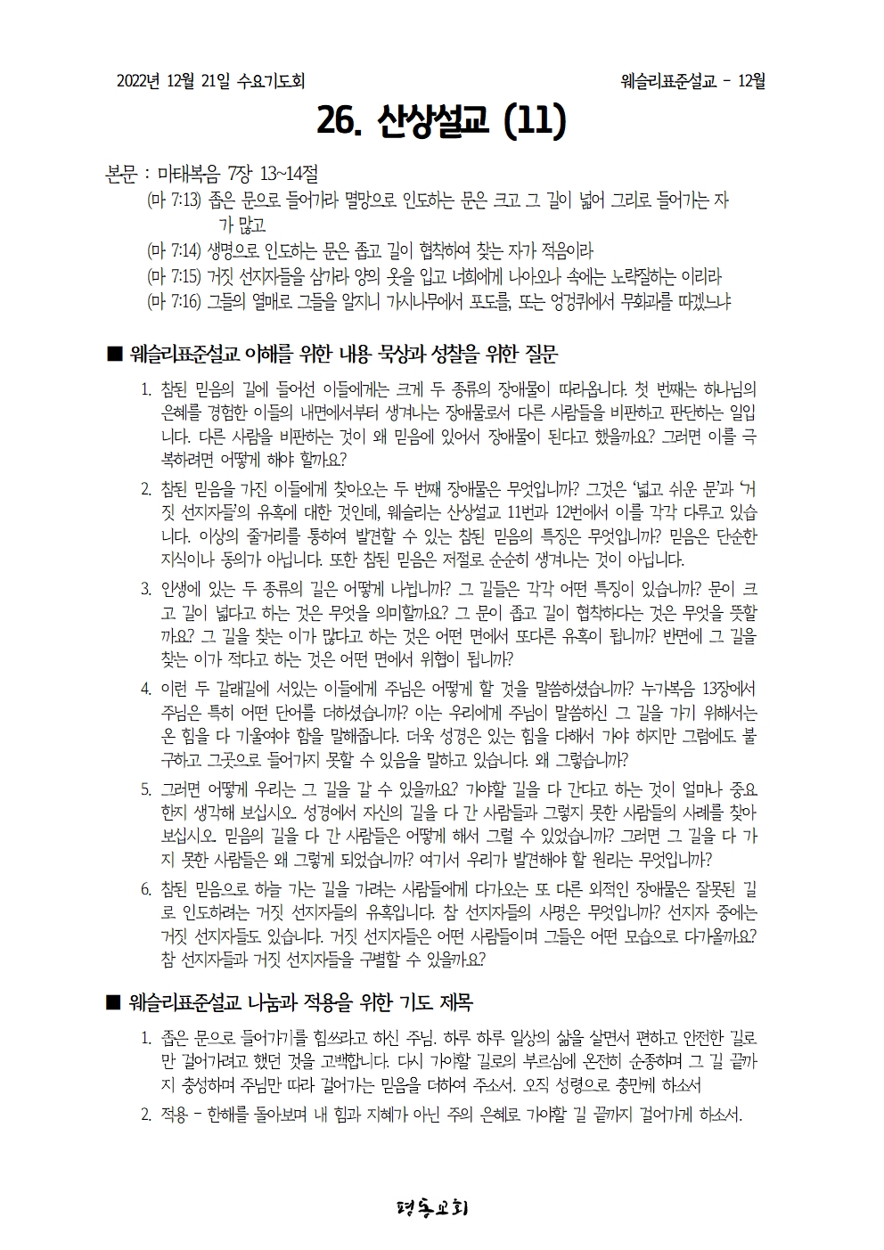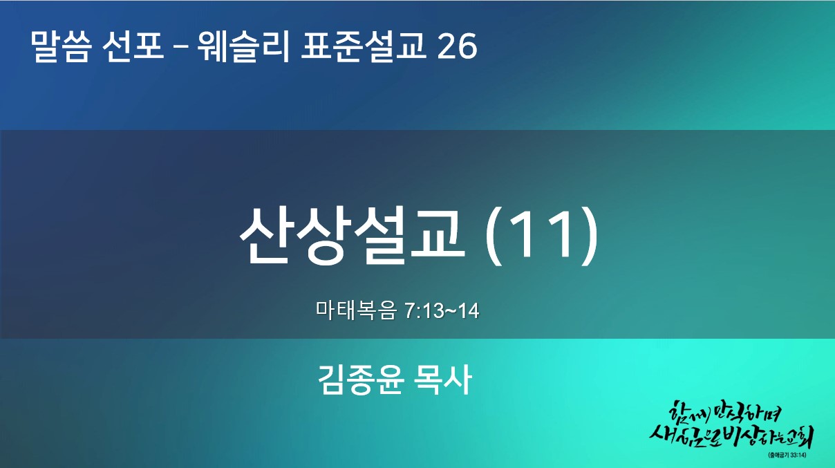 13. 좁은 문으로 들어가라 멸망으로 인도하는 문은 크고 그 길이 넓어 그리로 들어가는 자가 많고