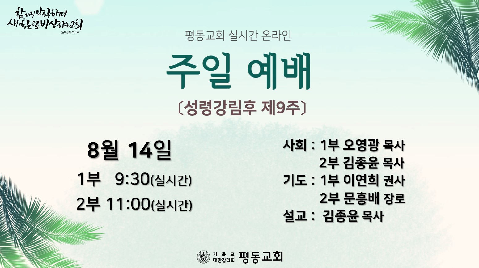 | 8월 14일 주일예배 | 김종윤 목사 | 2022-08-14 | |||