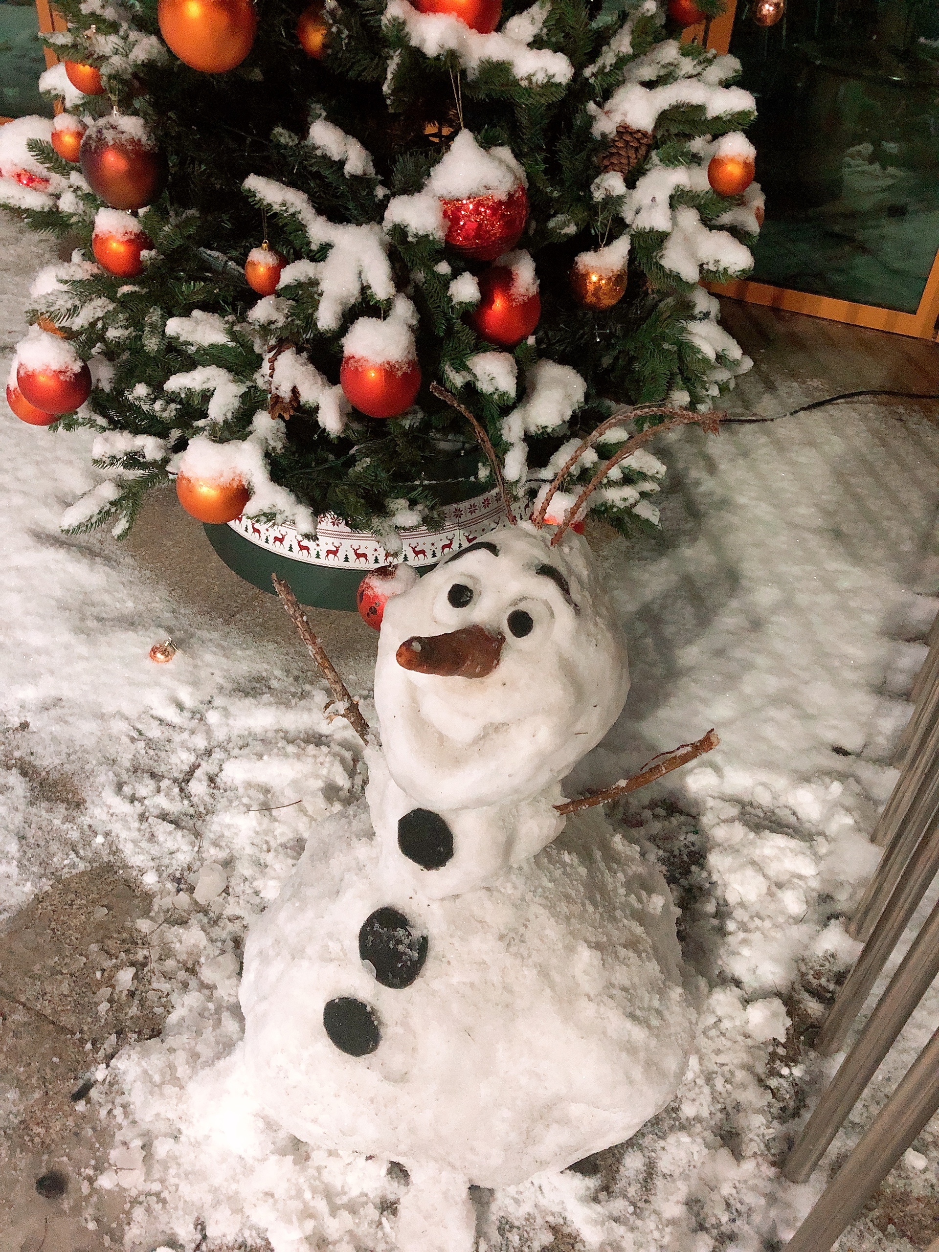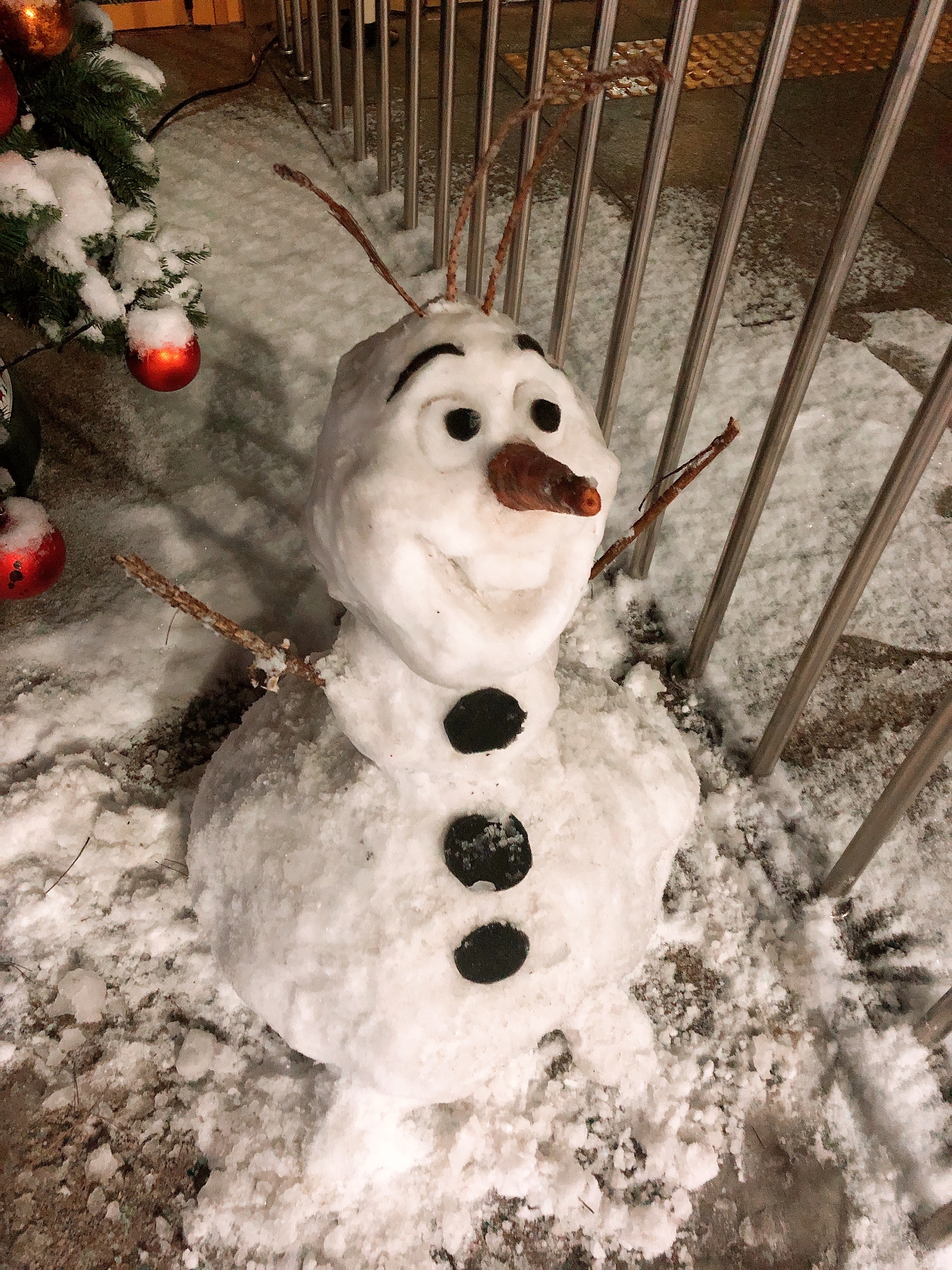 잠시동안 동심으로 돌아가서 몇몇이 함께 눈을 굴리다보니, 약간은 어설프지만 찬양하는 올라~프가 만들어졌습니다! ^^