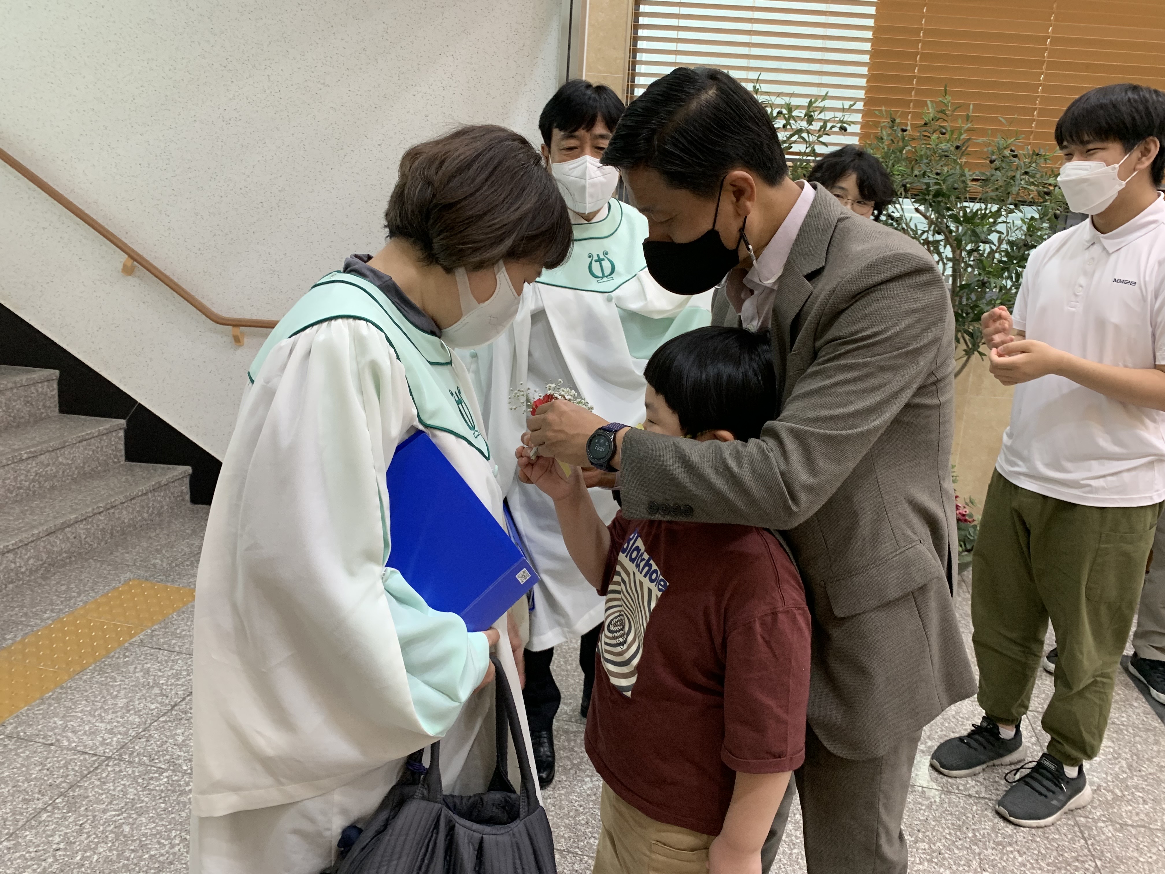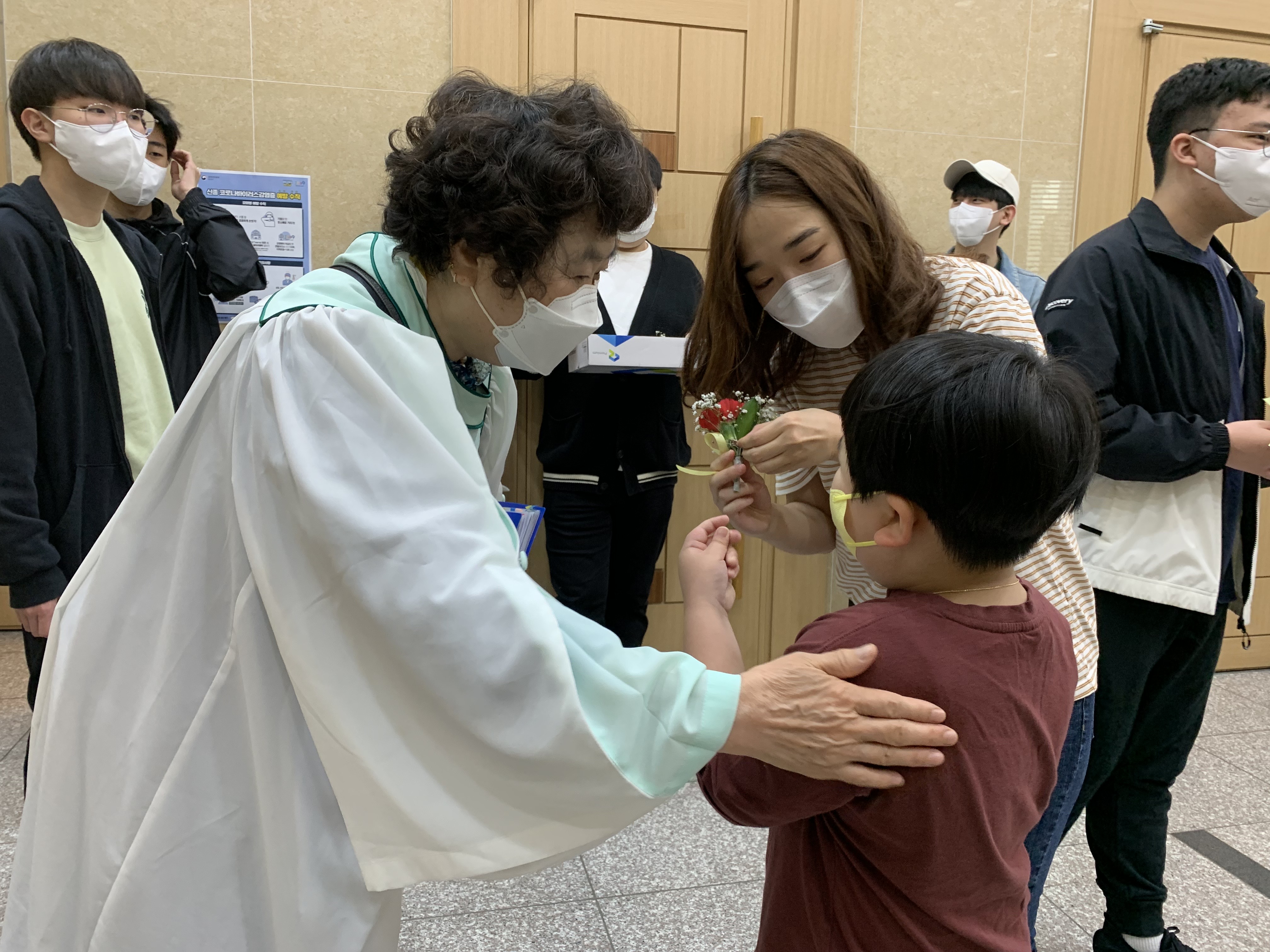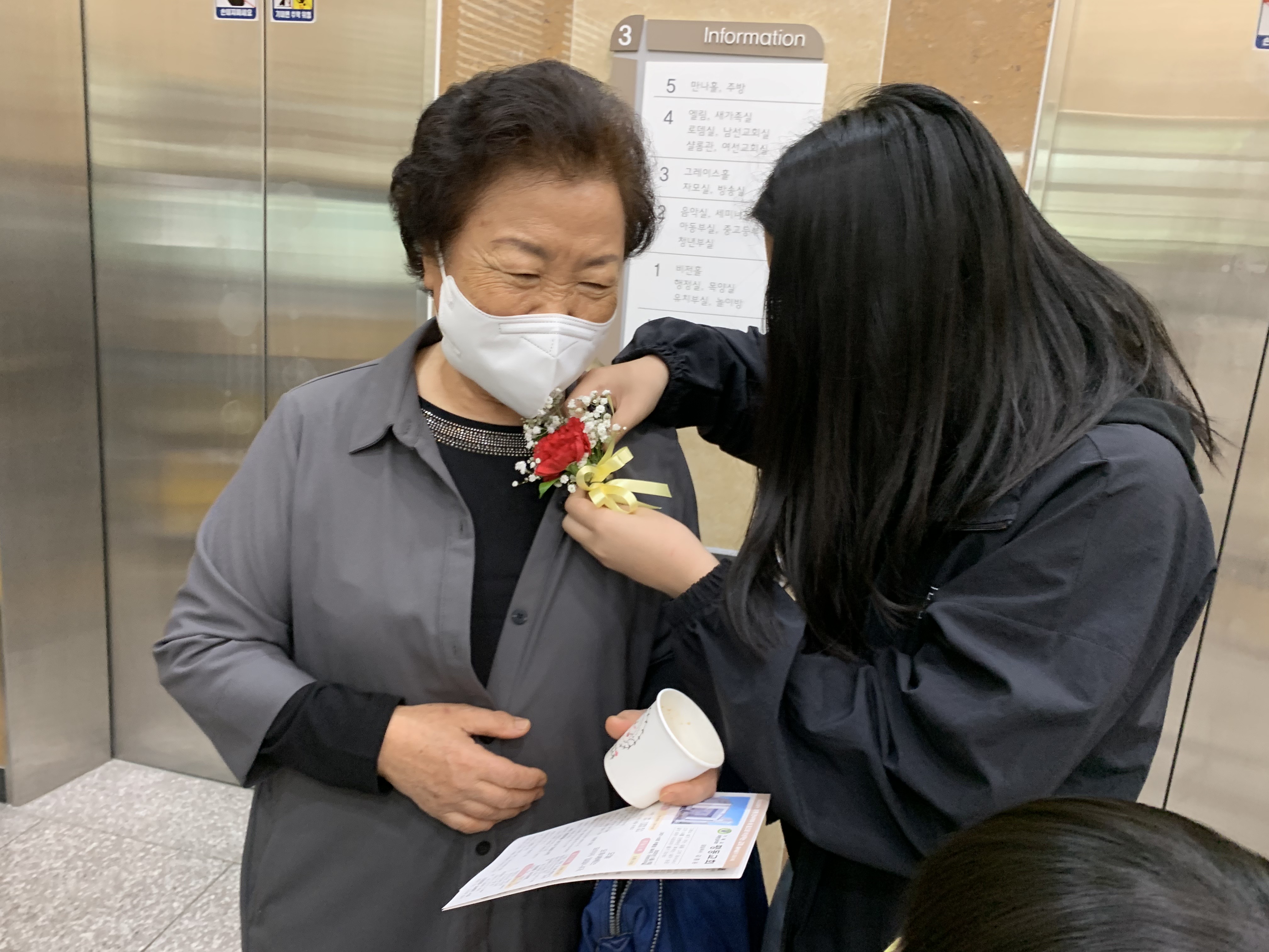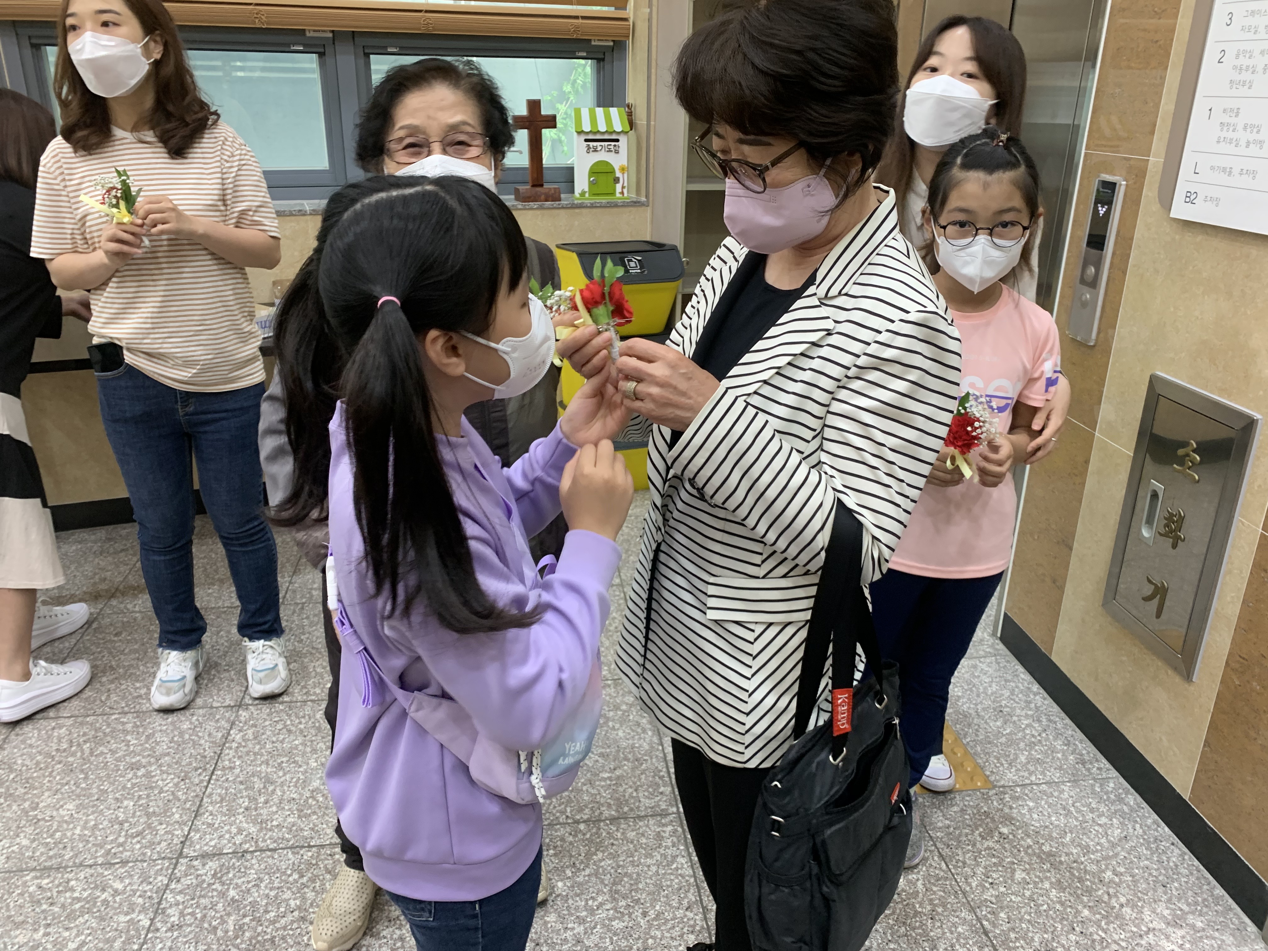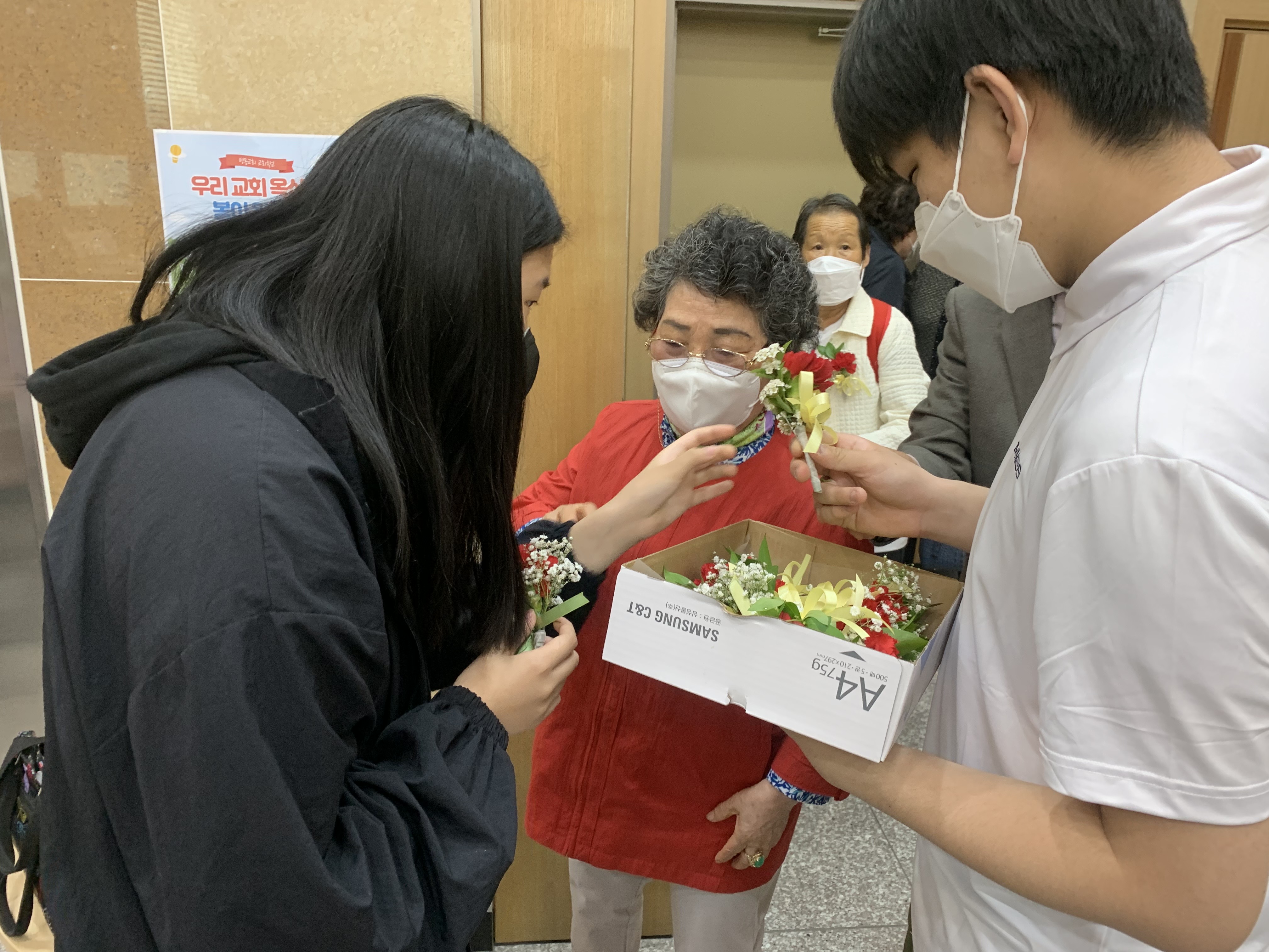 2022년 어버이주일을 맞이하여 교회학교 친구들이 성도님들께 카네이션 달아드리기 행사를 진행하였습니다.