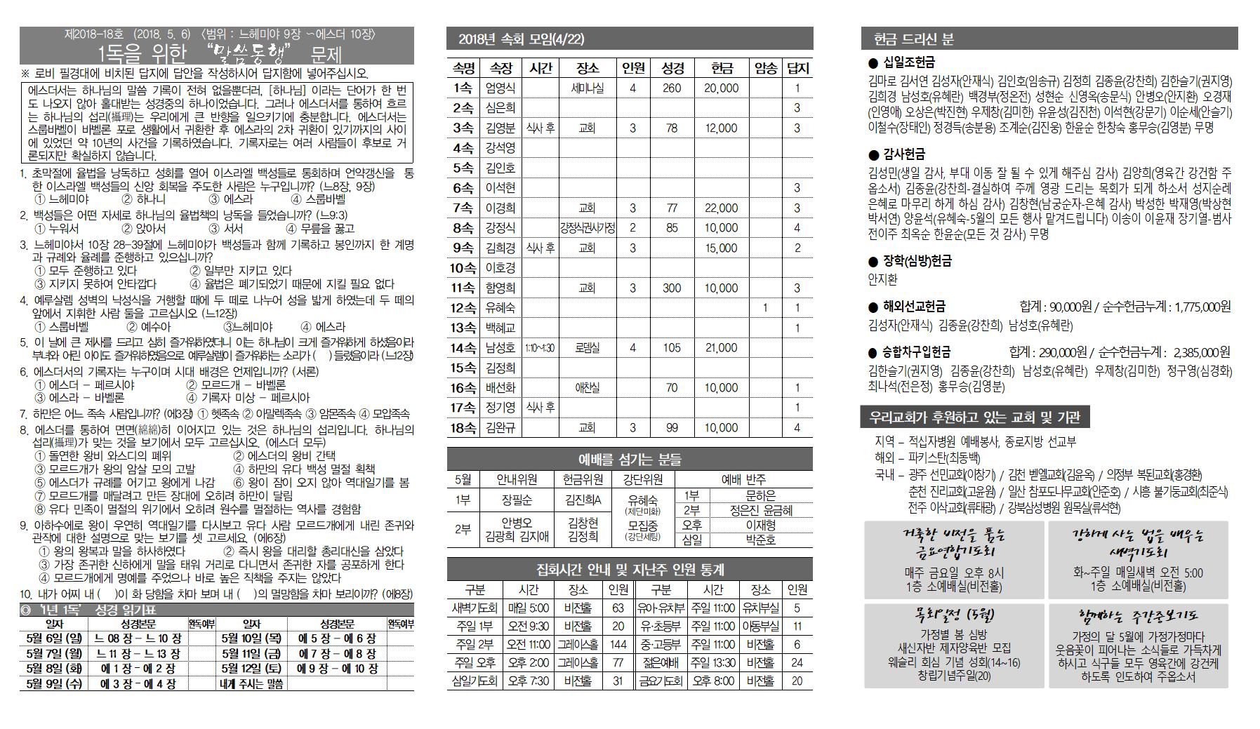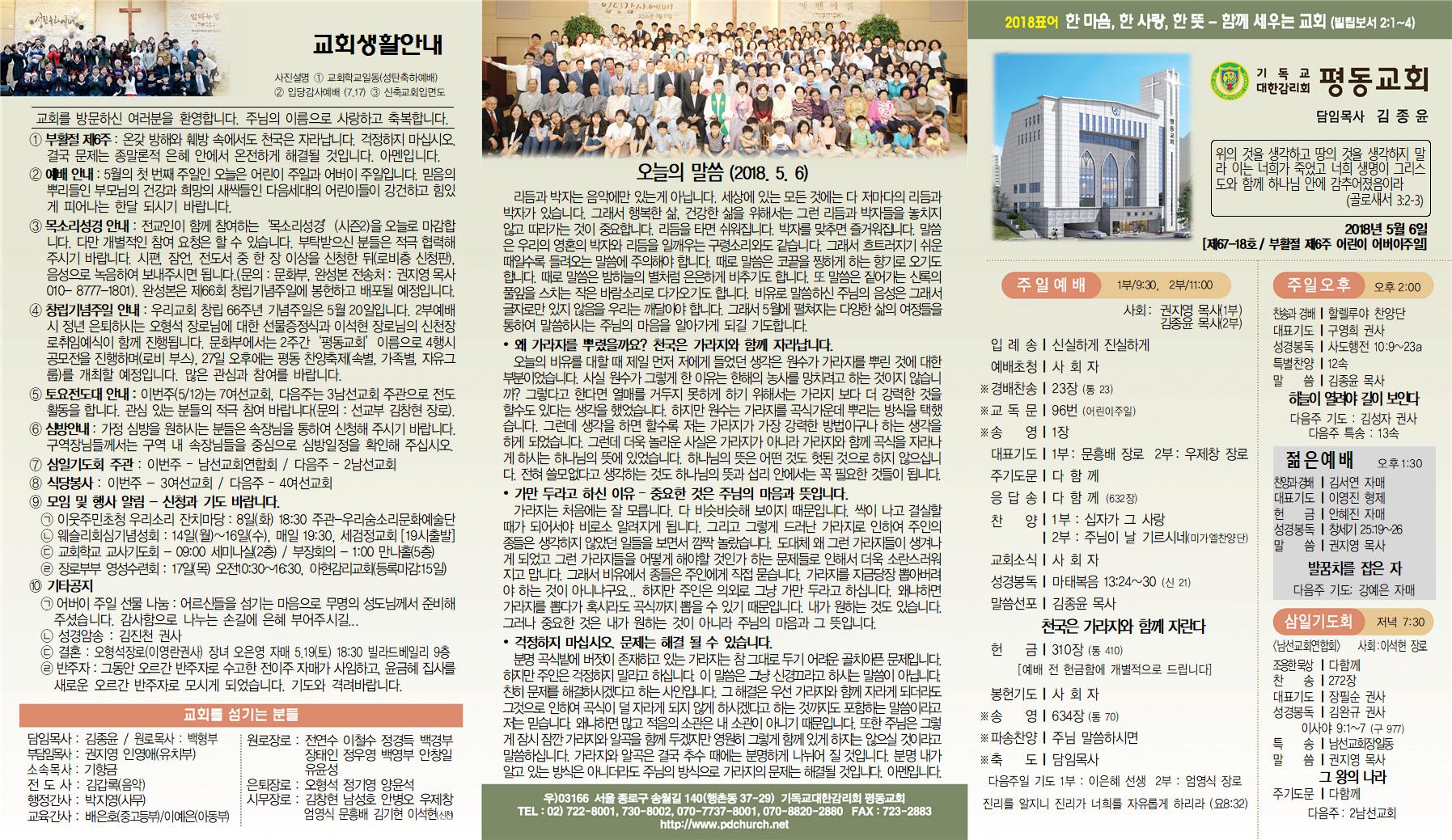 5월 1주(6일) 교회소식