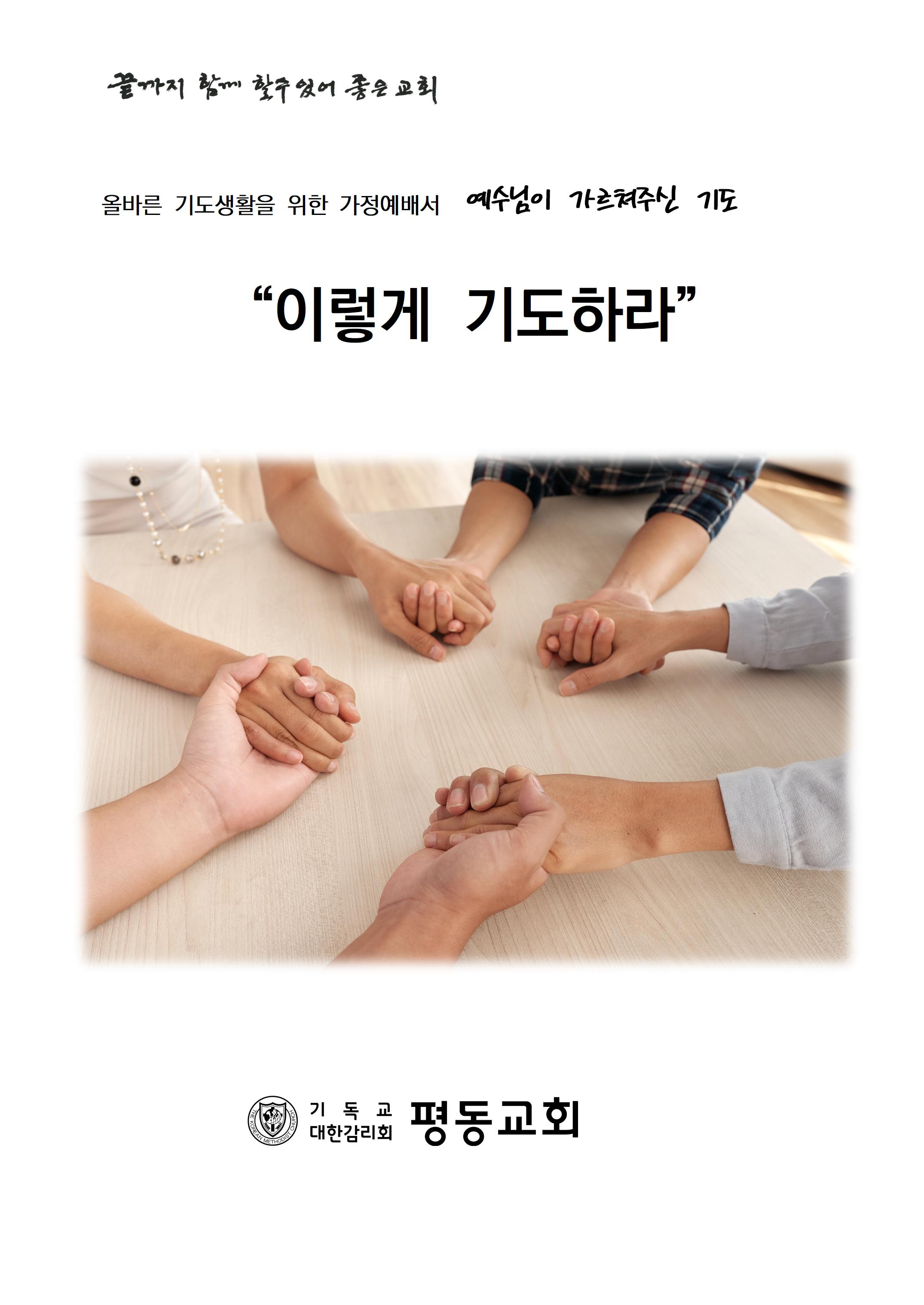 코로나19 장기화로 인한 영적인 어려움을 극복하기 위해 평동교회 모든 가족이 함께하는 가정예배를 새롭게 시작하려고 합니다. 가정예배의 첫번째 주제는 '주기도문'을 주제로 시작합니다. 9월 첫주부터 시작할 수 있도록 자료를 보내드리며 예배자료는 총 13주로 구성되어 있습니다. 가정의 상황에 따라 1주일에 1회이상 드리시면 됩니다. 우선은 이번 주에 각 가정에 1부씩 보내드렸고 추가로 더 원하시는 가정은 인영애 목사 또는 권지영 목사에게 신청해 주시기 바랍니다. * 주기도문 가정예배 자료집이 필요하신 분은 사무실로 연락주시기 바랍니다.