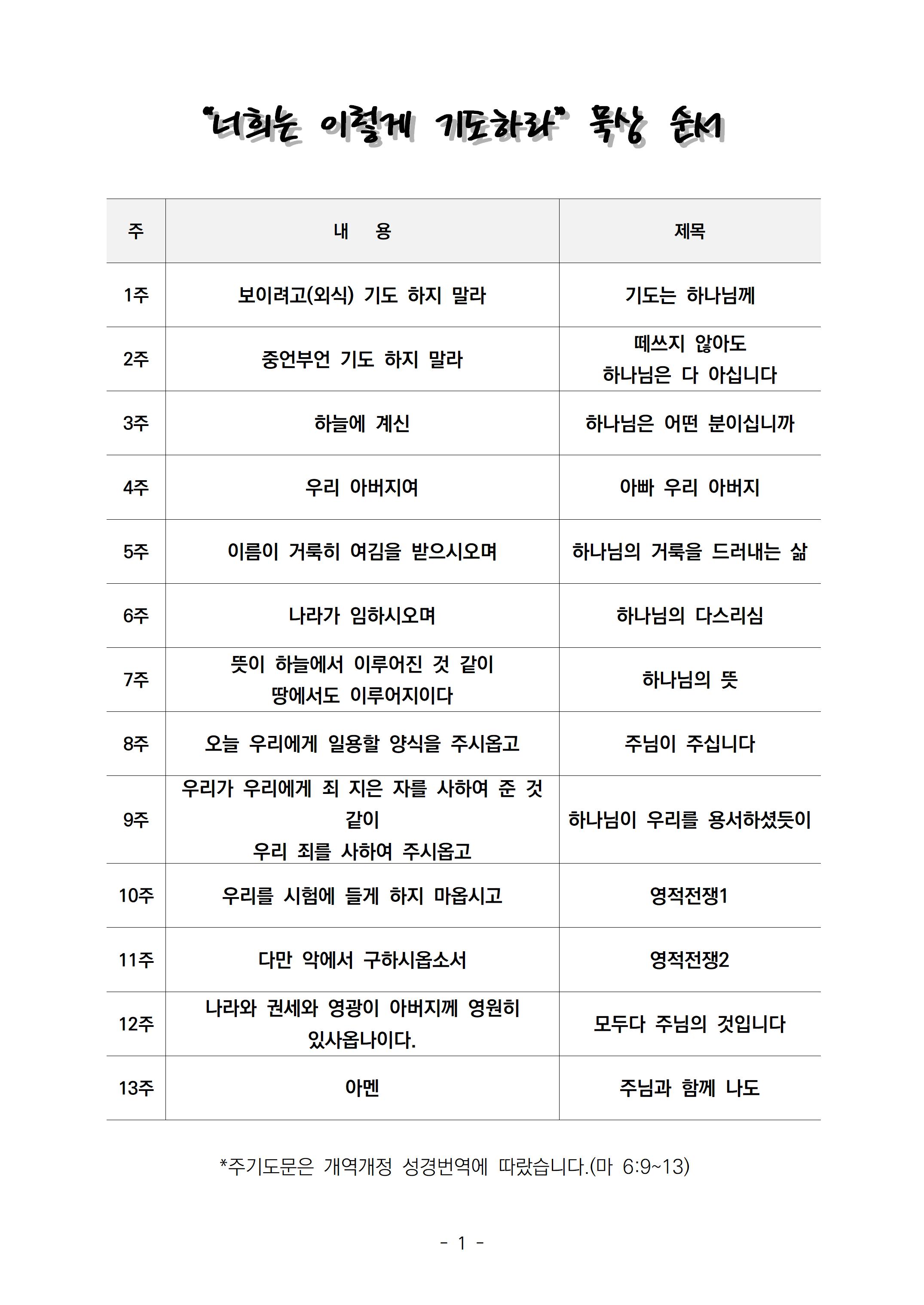 | 새롭게 시작하는 가정예배 예배자료(주기도문) | 운영자 | 2020-09-03 | |||