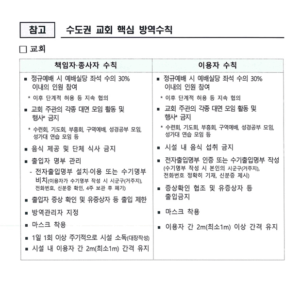 종로구청에서 보내온 사회적 거리두기 조정에 따른 방역수칙 안내에 관한 공문입니다. 현장 예배를 준비하면서 참조하도록 하십시오. 또한 코로나 종식과 온전한 예배 회복을 위하여 함께 기도해주시기 바랍니다. 우리 교회는 10월 18일 주일부터 주일 현장예배를 1부(오전 9시 30분)와 2부(오전 11시)로 3층 그레이스홀에서 드립니다. 실시간 온라인으로 예배실황이 송출됩니다. 참석이 어려우신 분들은 평동교회 유튜브 채널을 이용하여 주십시오. ![]() ![]()