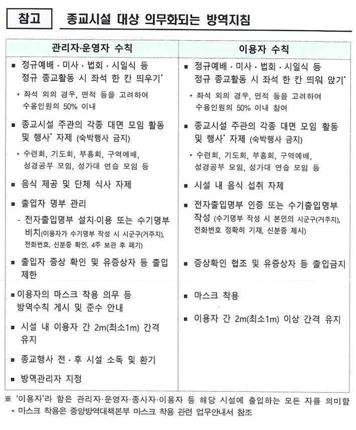 그동안에도 어려운 가운데서 예배를 위하여 방역에 적극 협력해 주신 모든 분들께 감사를 드리며 아울러 건강하고 안전한 예배를 위하여 함께 힘써 주시기 바랍니다.