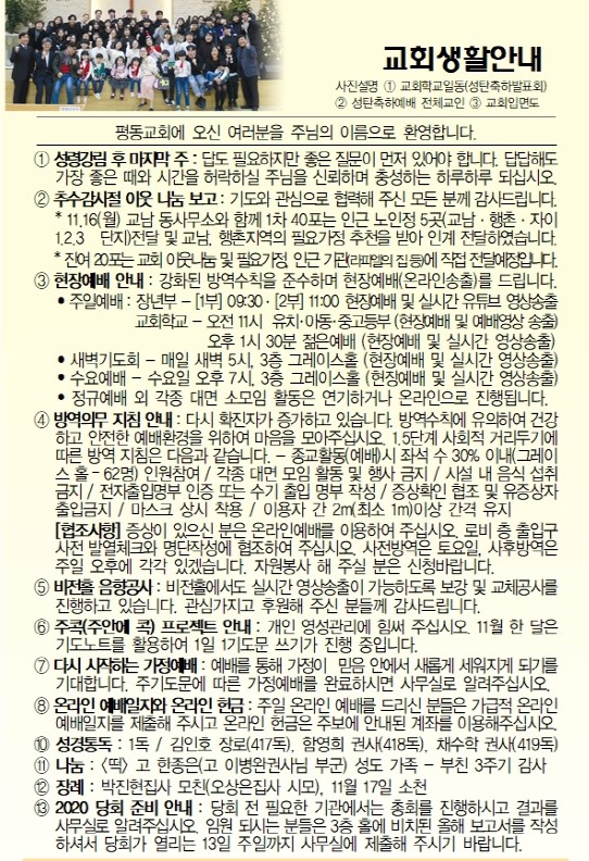 11월 3주(15일) 교회소식