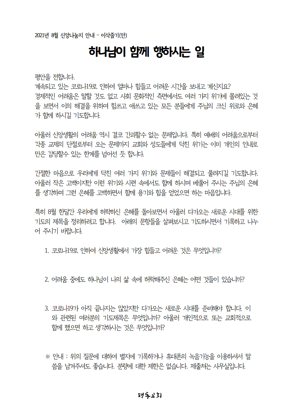 [코로나 이삭줍기] 8월의 나눔지 안내