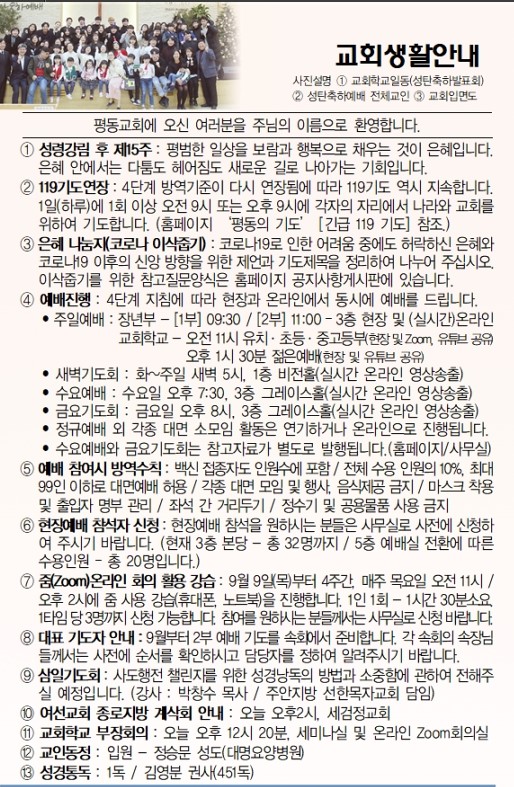 9월 1주(5일) 교회소식