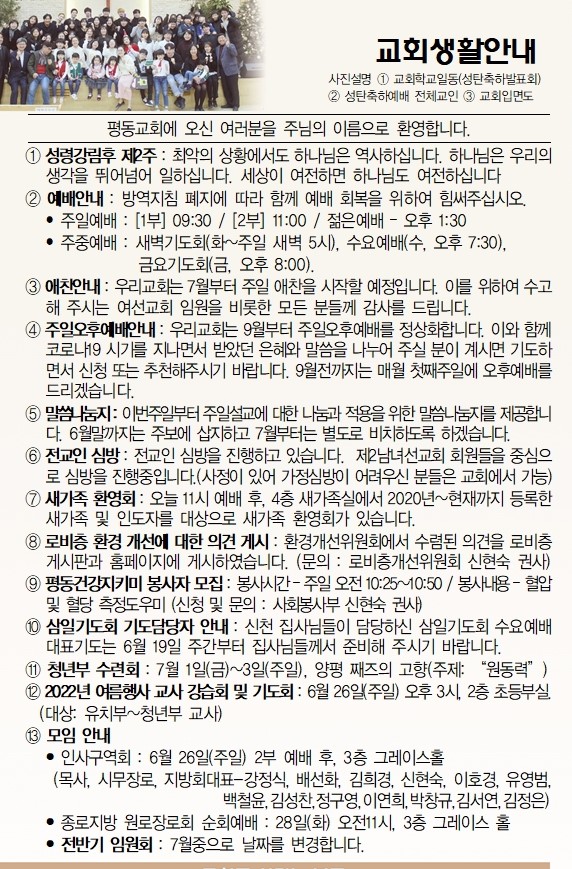 6월 19일 교회소식