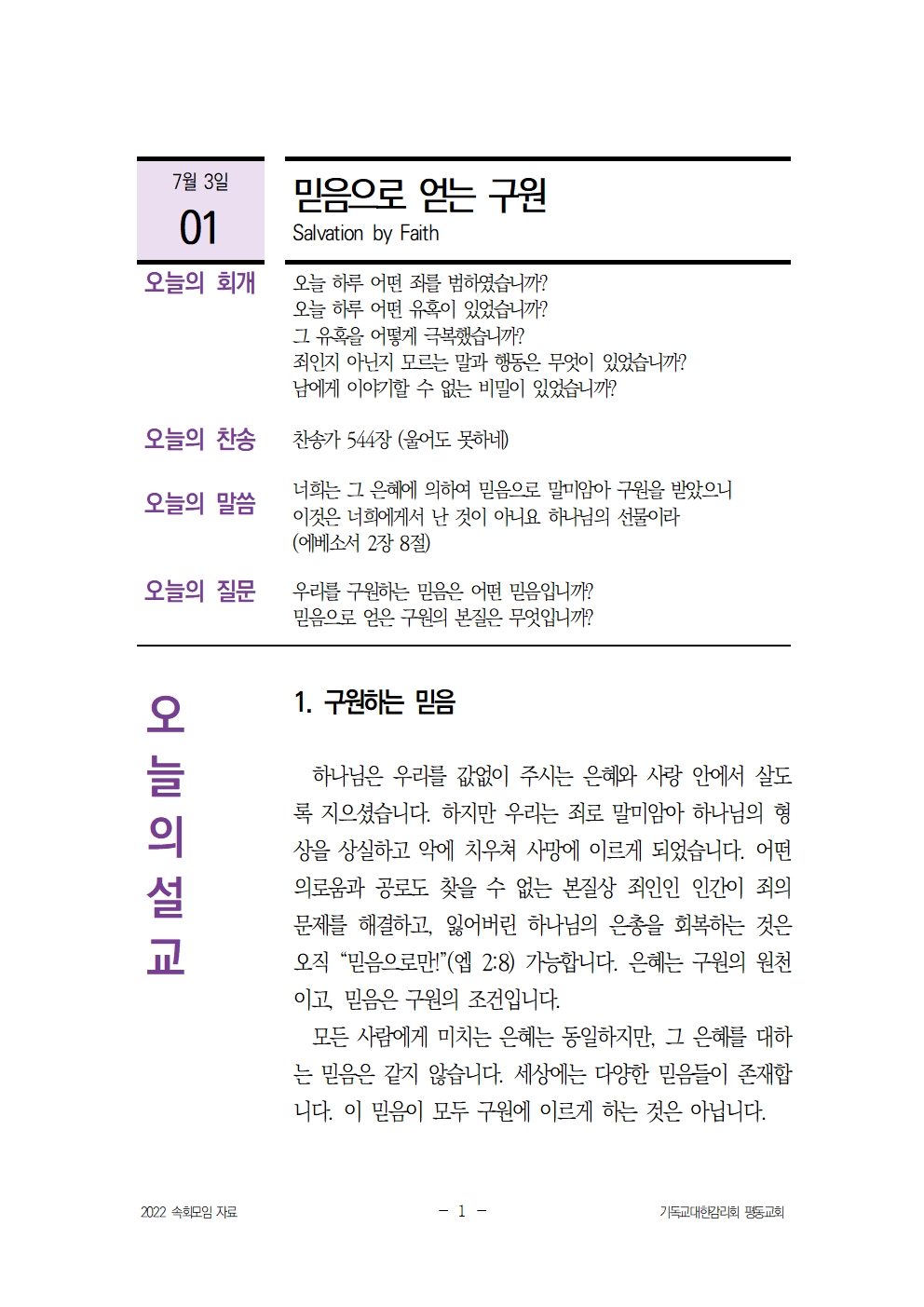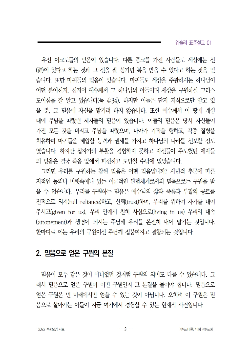 내용 : 웨슬리표준설교 01- 믿음으로 얻은 구원