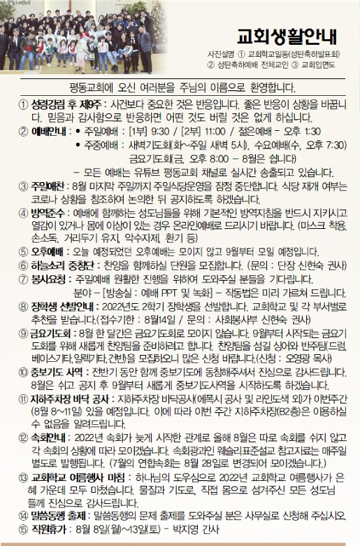 8월 7일 교회소식