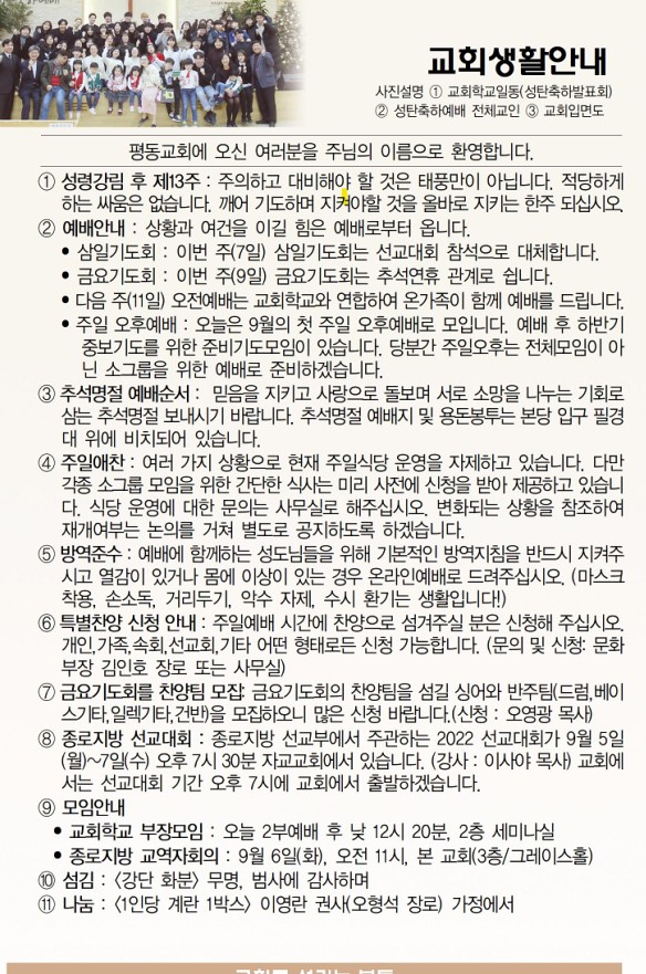 9월 11일 교회소식