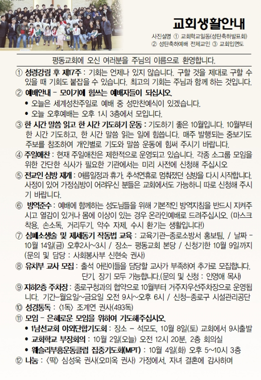 10월 2일 교회소식