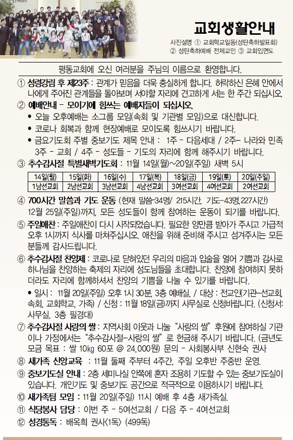 11월 20일 교회소식