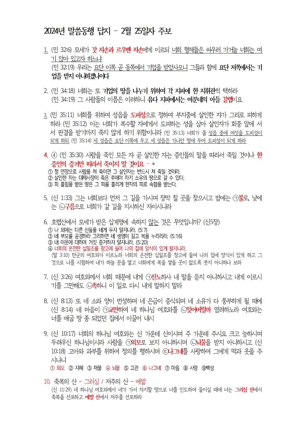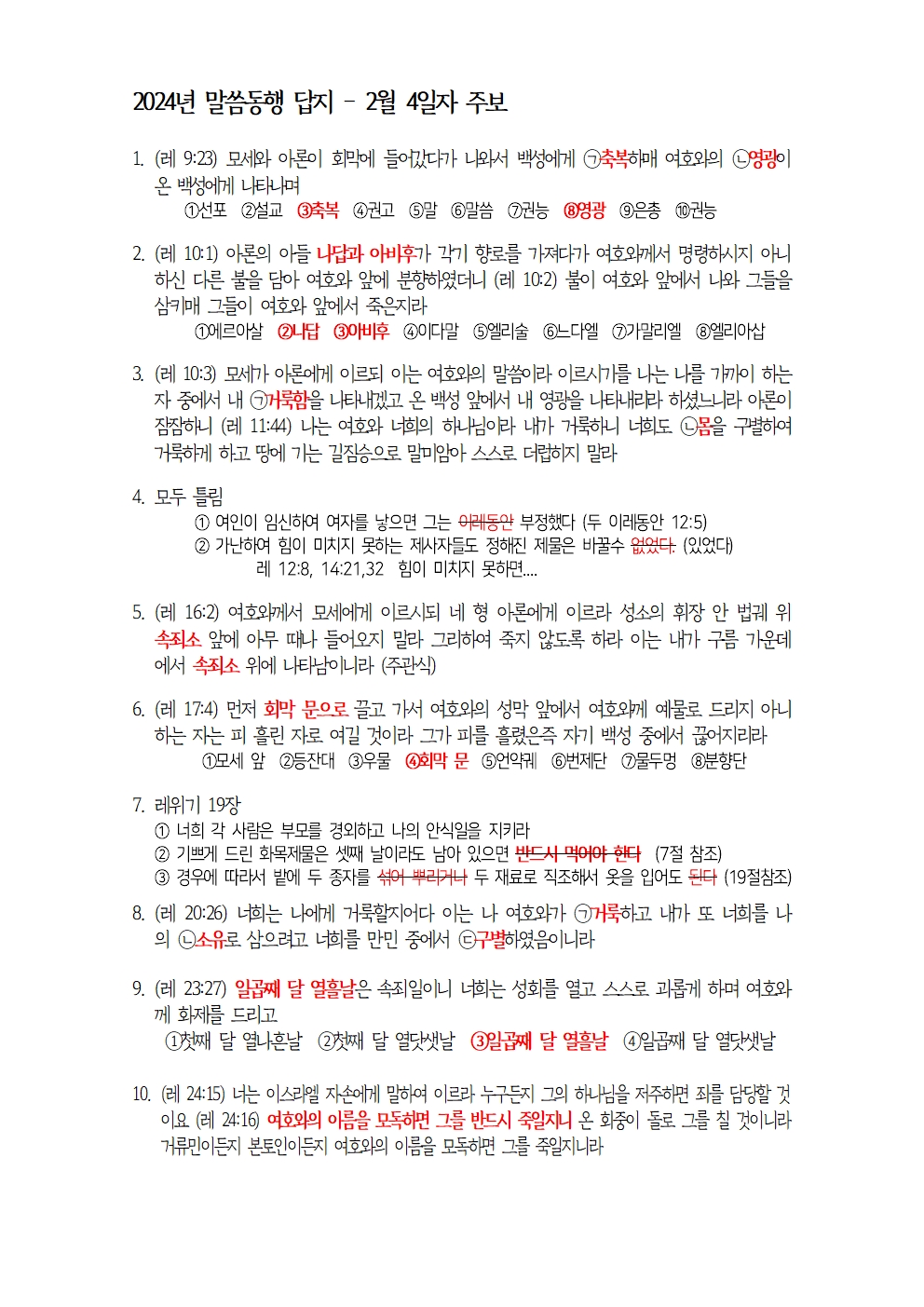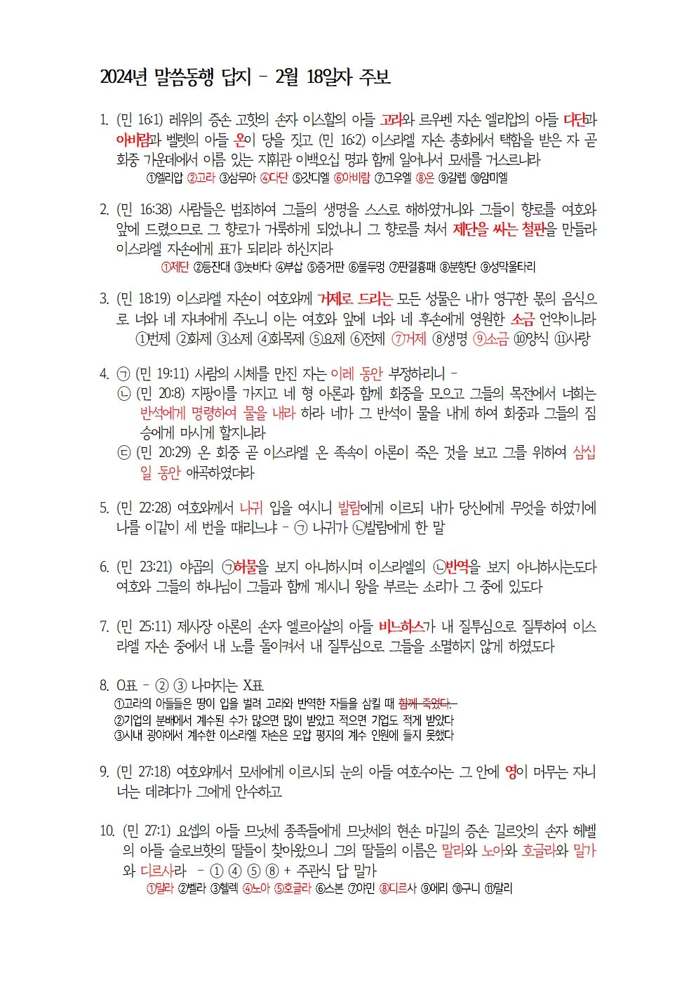 2월분 말씀동행 답지