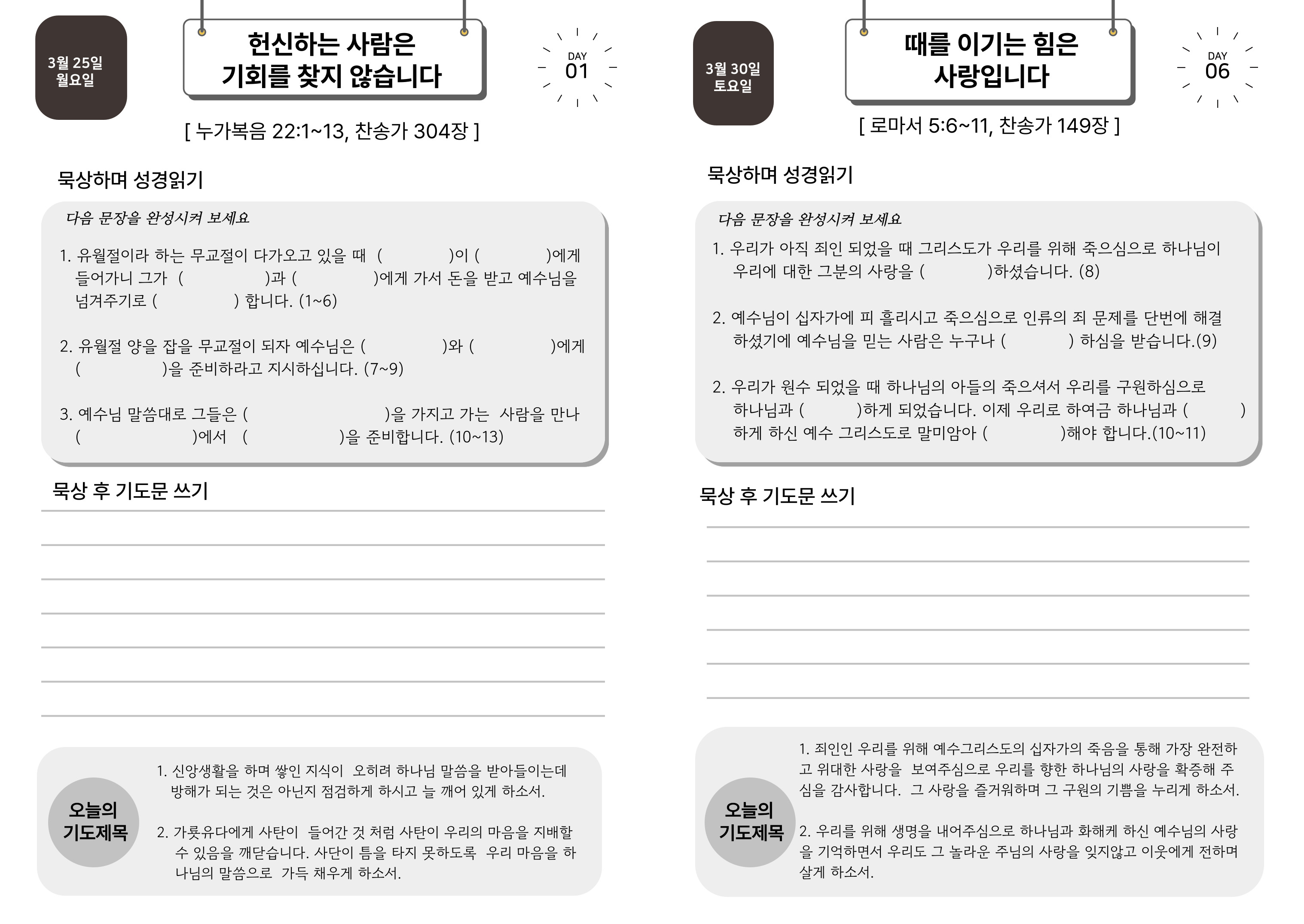 특별새벽기도회와 함께하는 고난주간 묵상자료
