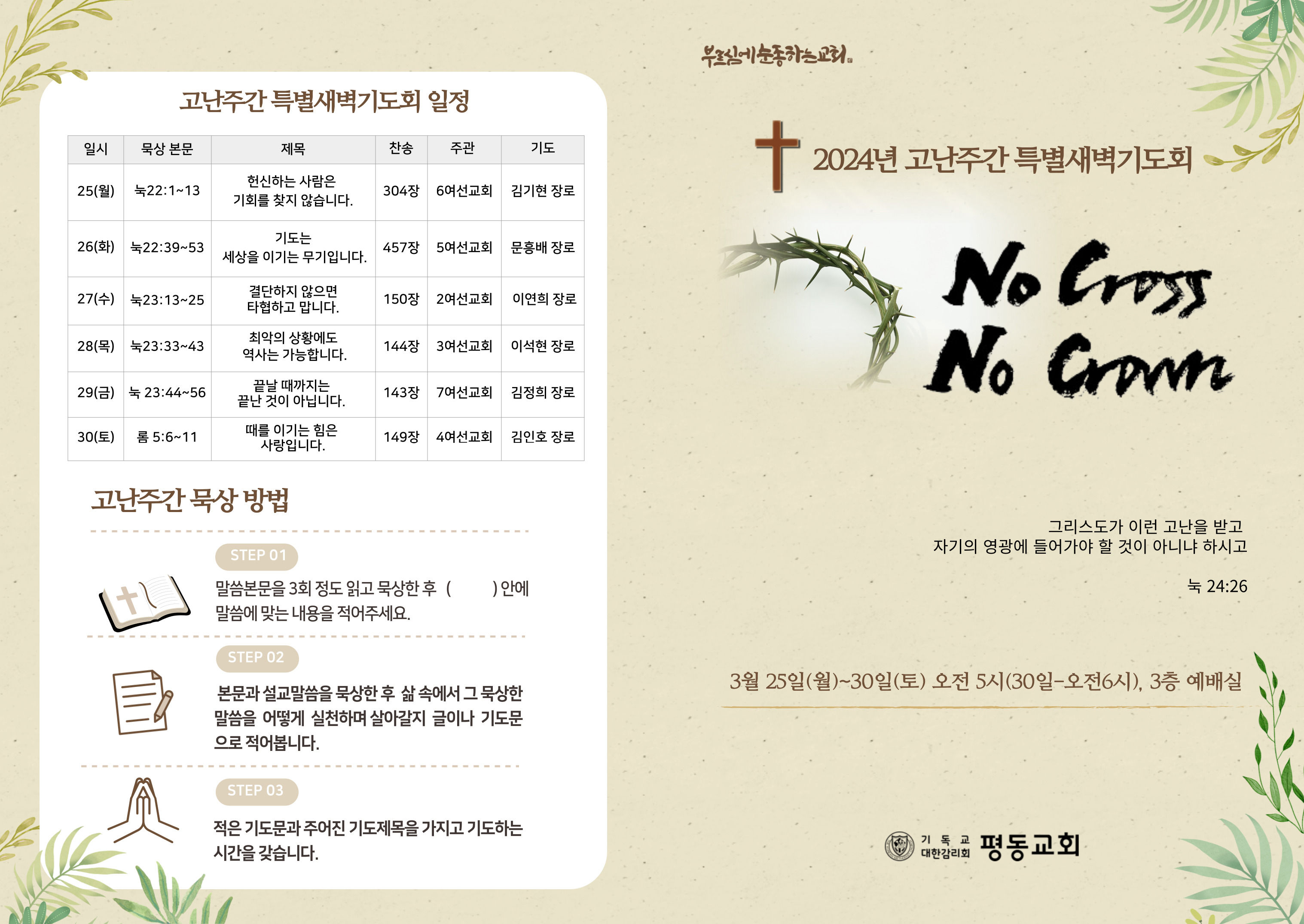 고난주간 특별새벽기도회 및 성금요일 안내