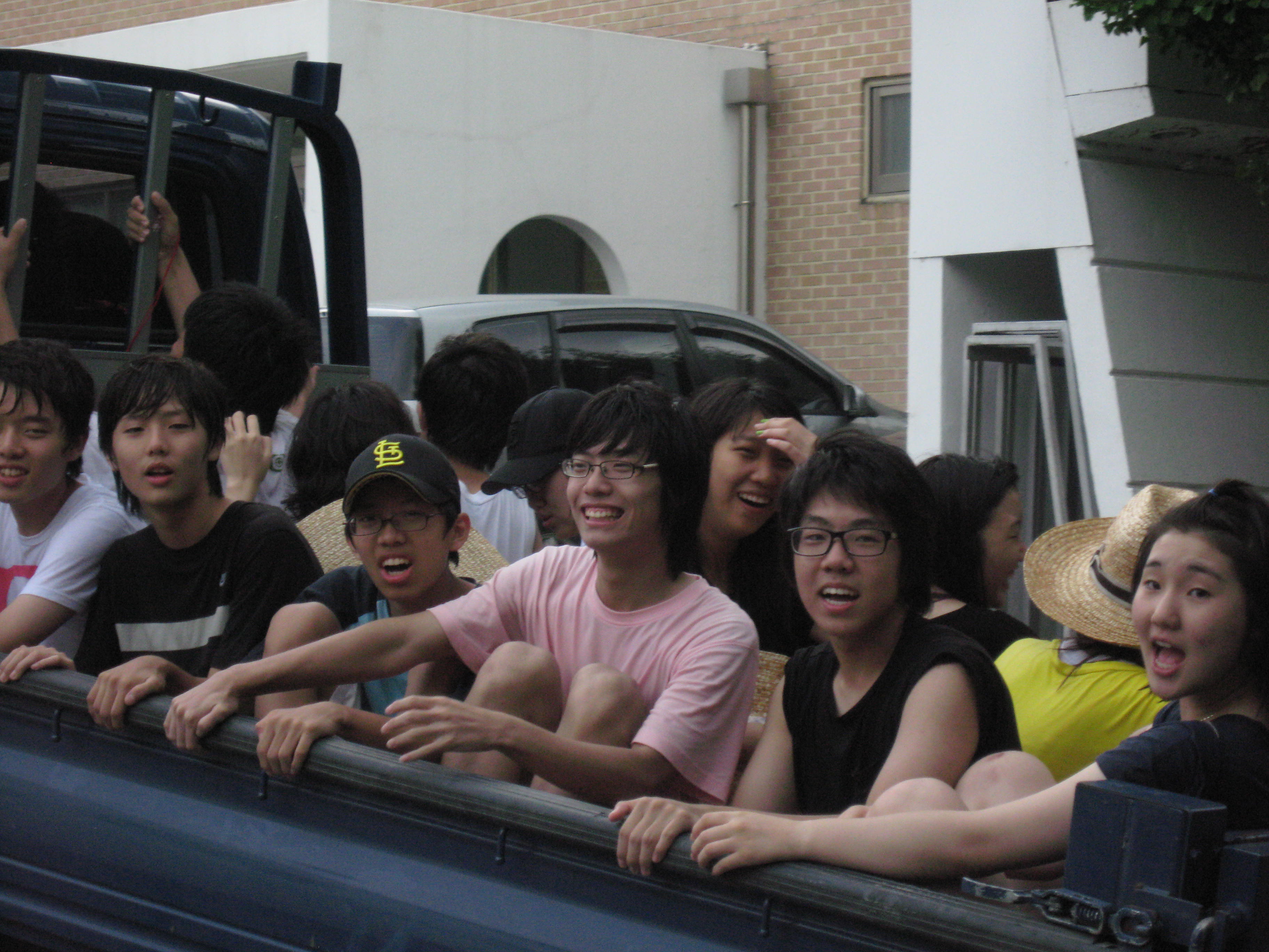 중고등부는 트럭 뒤에 타고 아주 신들이 났구만!!