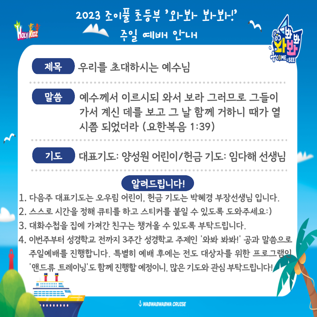 2023 조이풀 초등부 여름성경학교