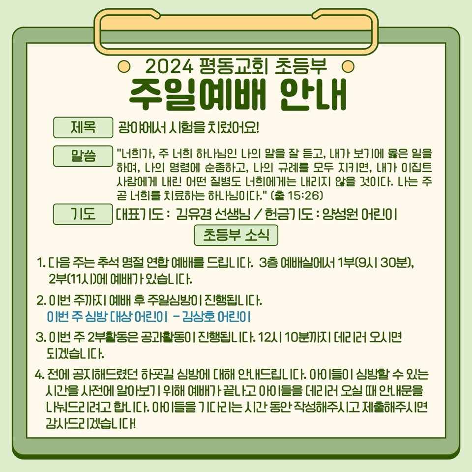2024 초등부 하굣길 심방 안내