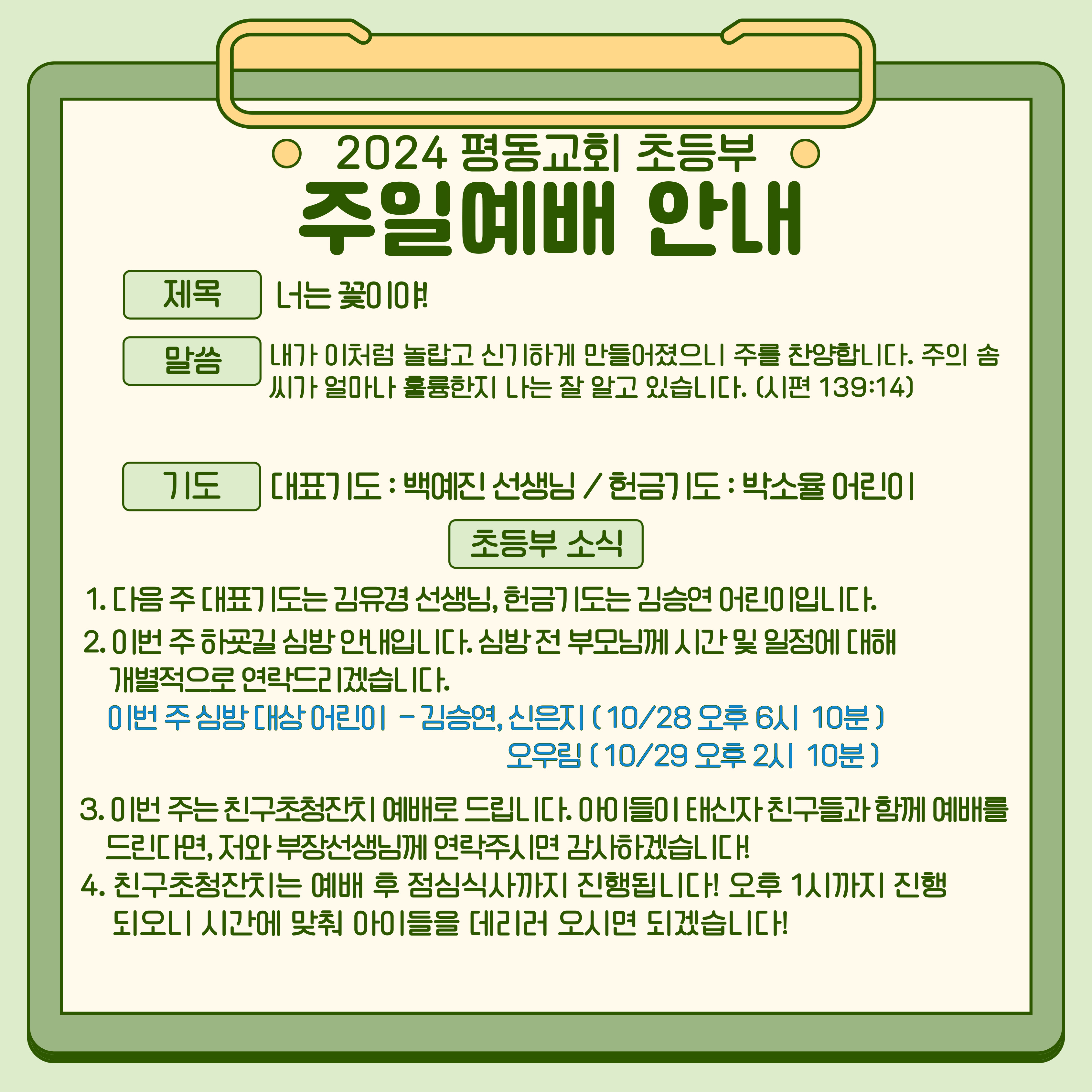 2024년 초등부 친구초청잔치 안내
