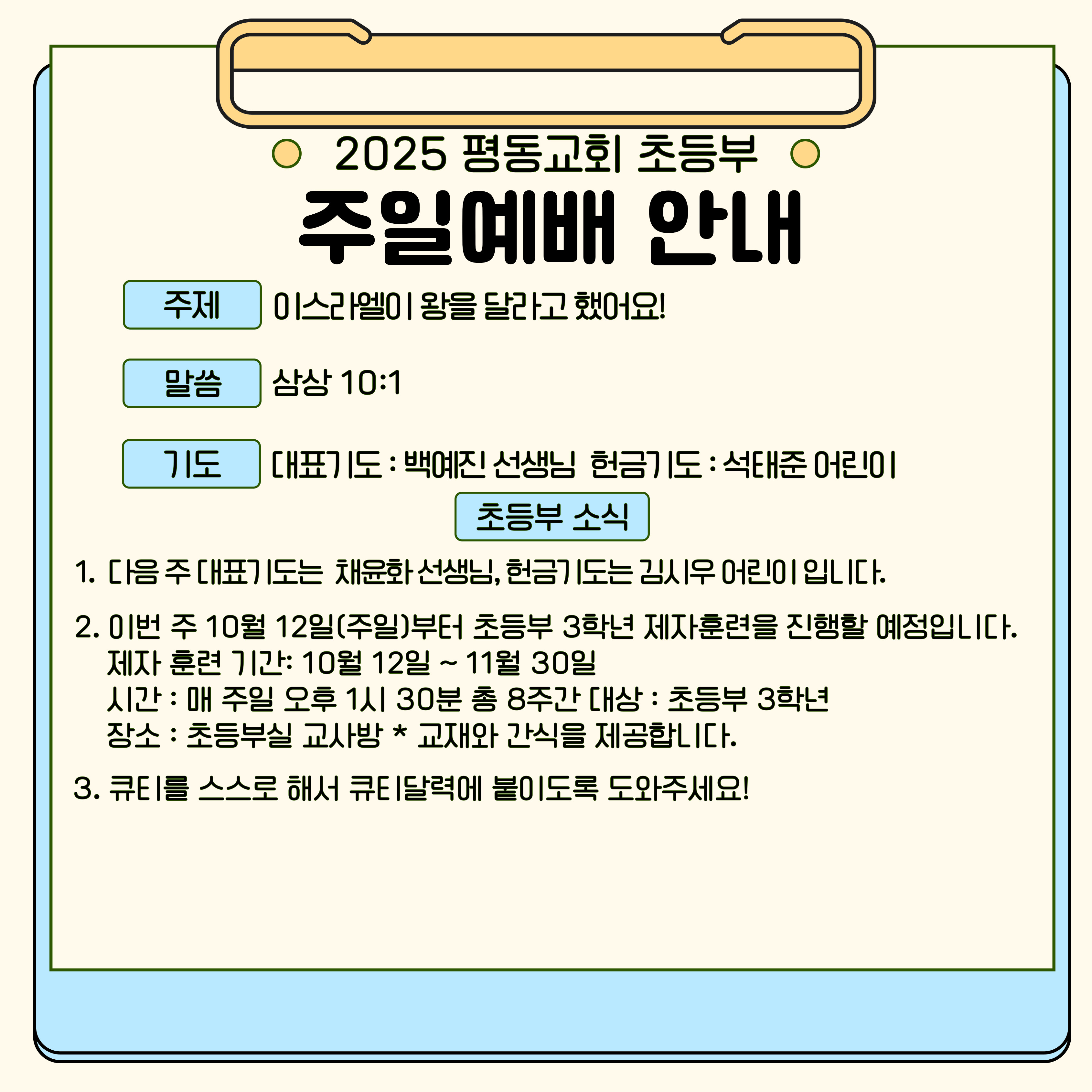 2025년 초등부 시크릿 심방 대작전 첫번째 이야기(10.18)