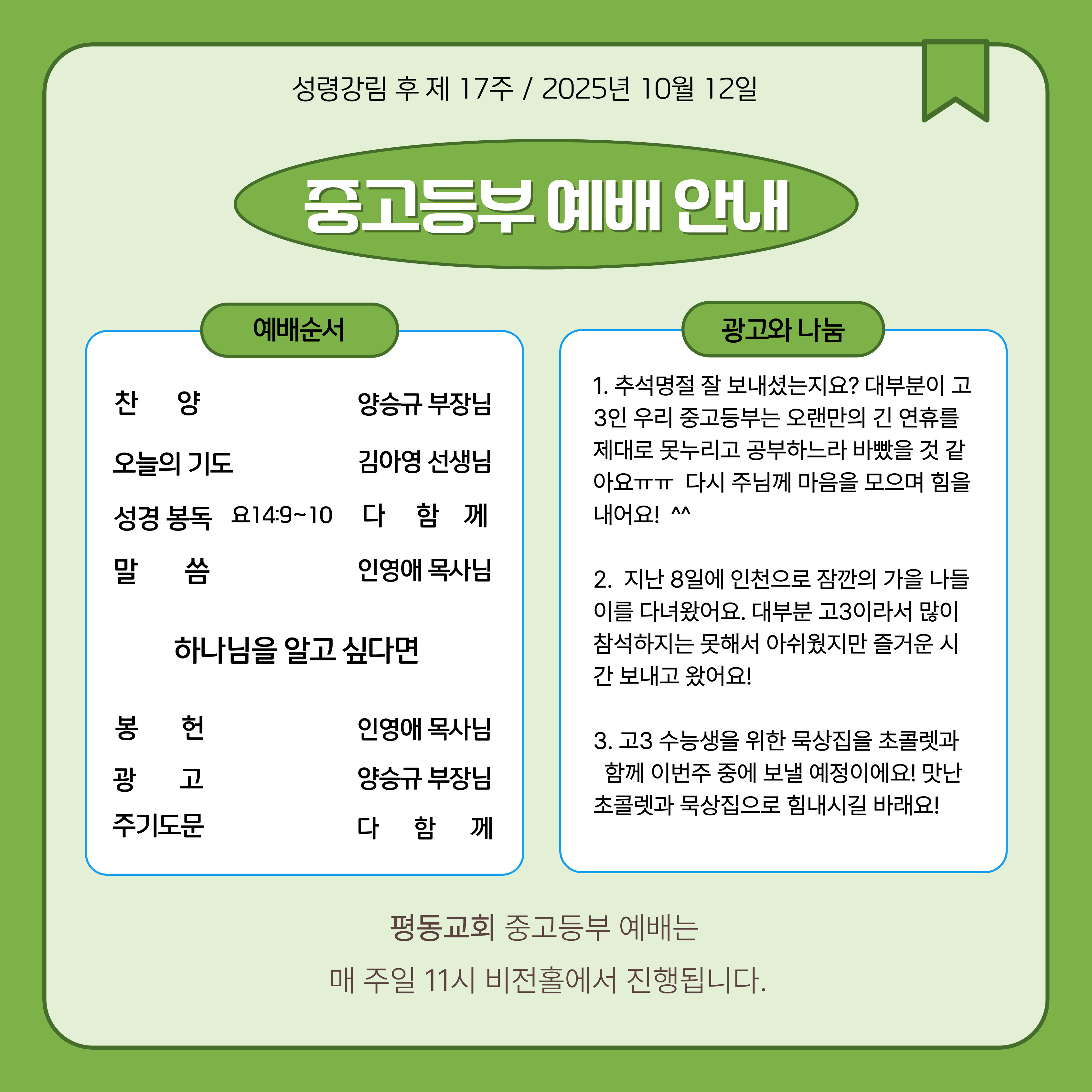 10월 12일 중고등부 예배