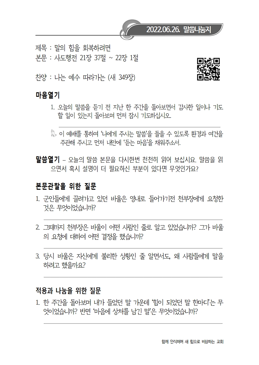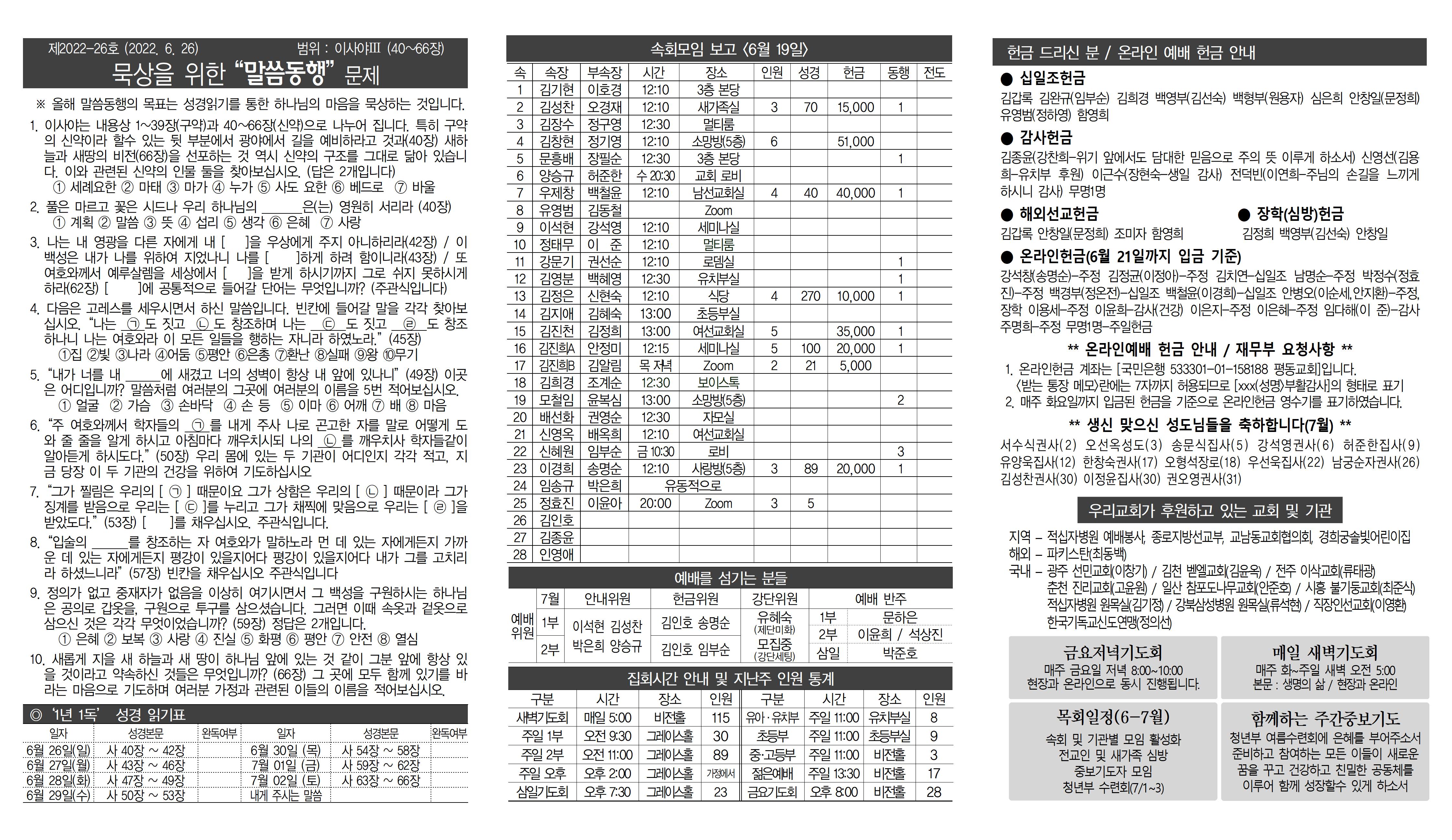 6월 26일자 주보 + 말씀나눔지