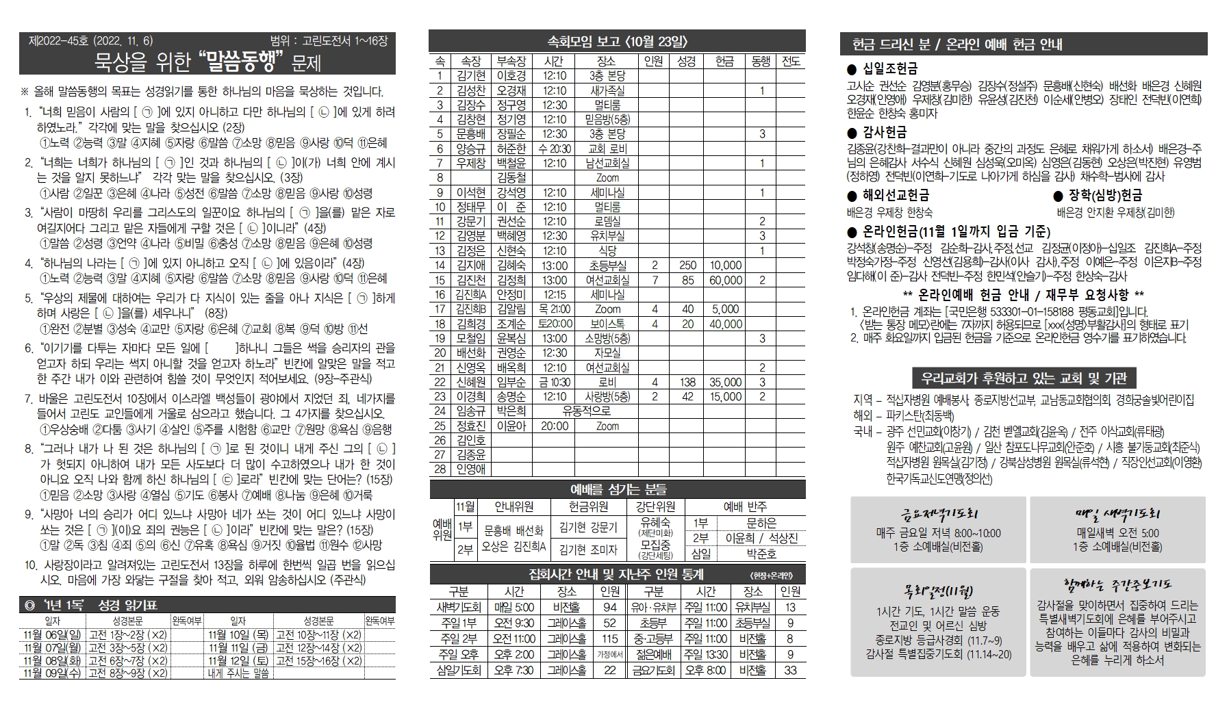 예배시간(헌금)안내