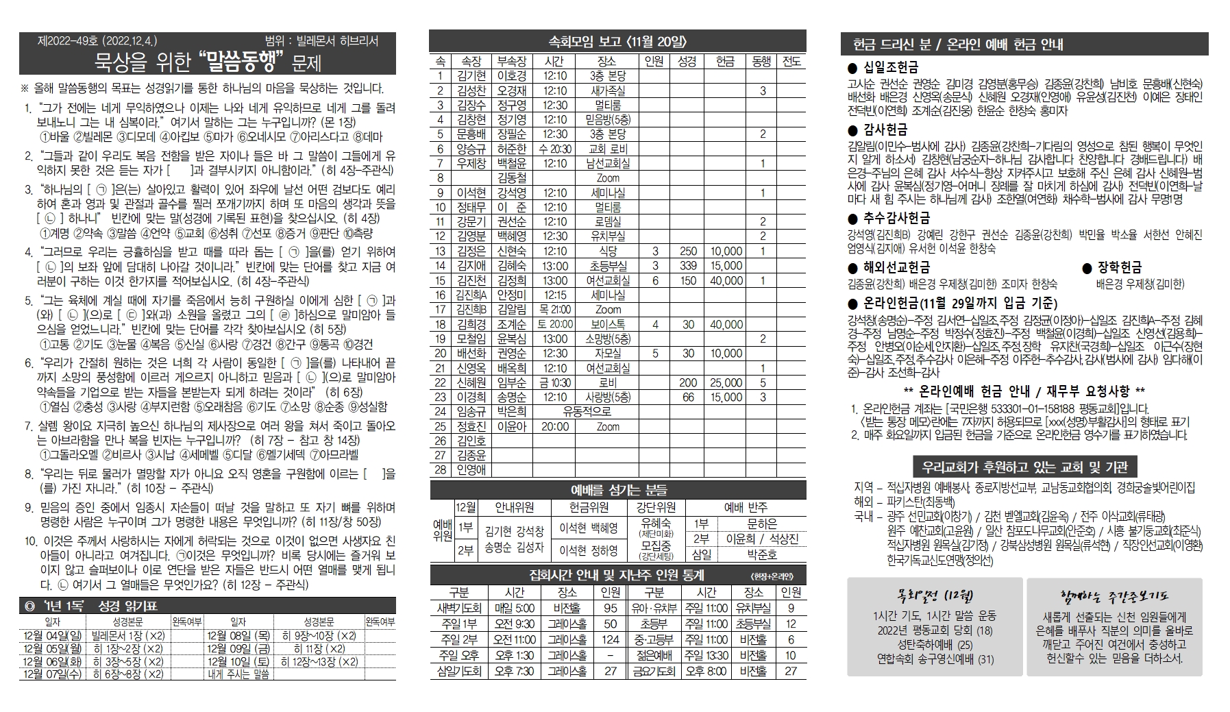 말씀동행 1번 문제를 수정해서 다시 올렸습니다. 착오를 일으키게 되어 죄송한 마음 전합니다.