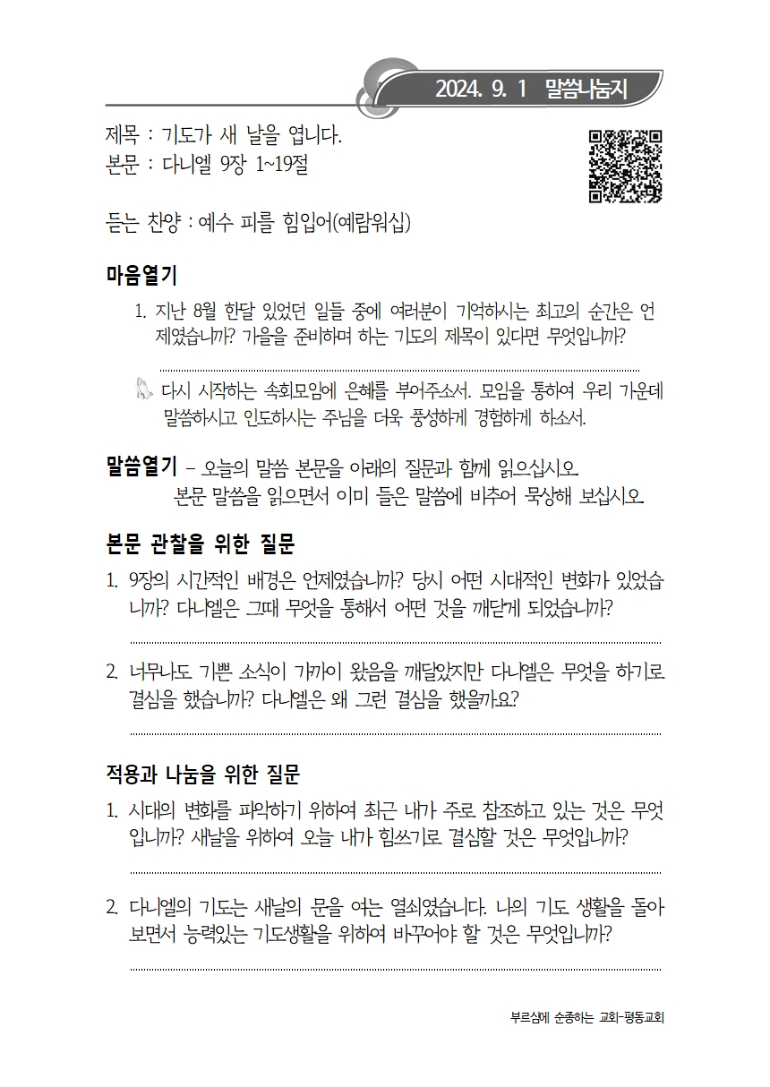 9월 1일 주보+말씀나눔지