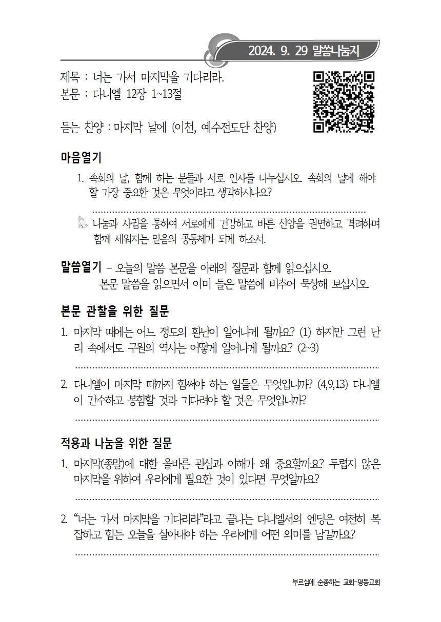 9월 29일 주보+말씀나눔지