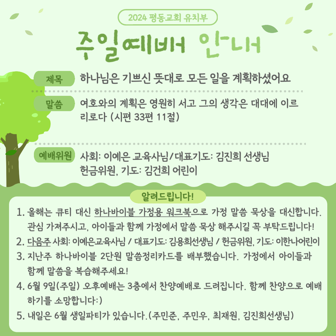 2024.06.09 유치부 예배