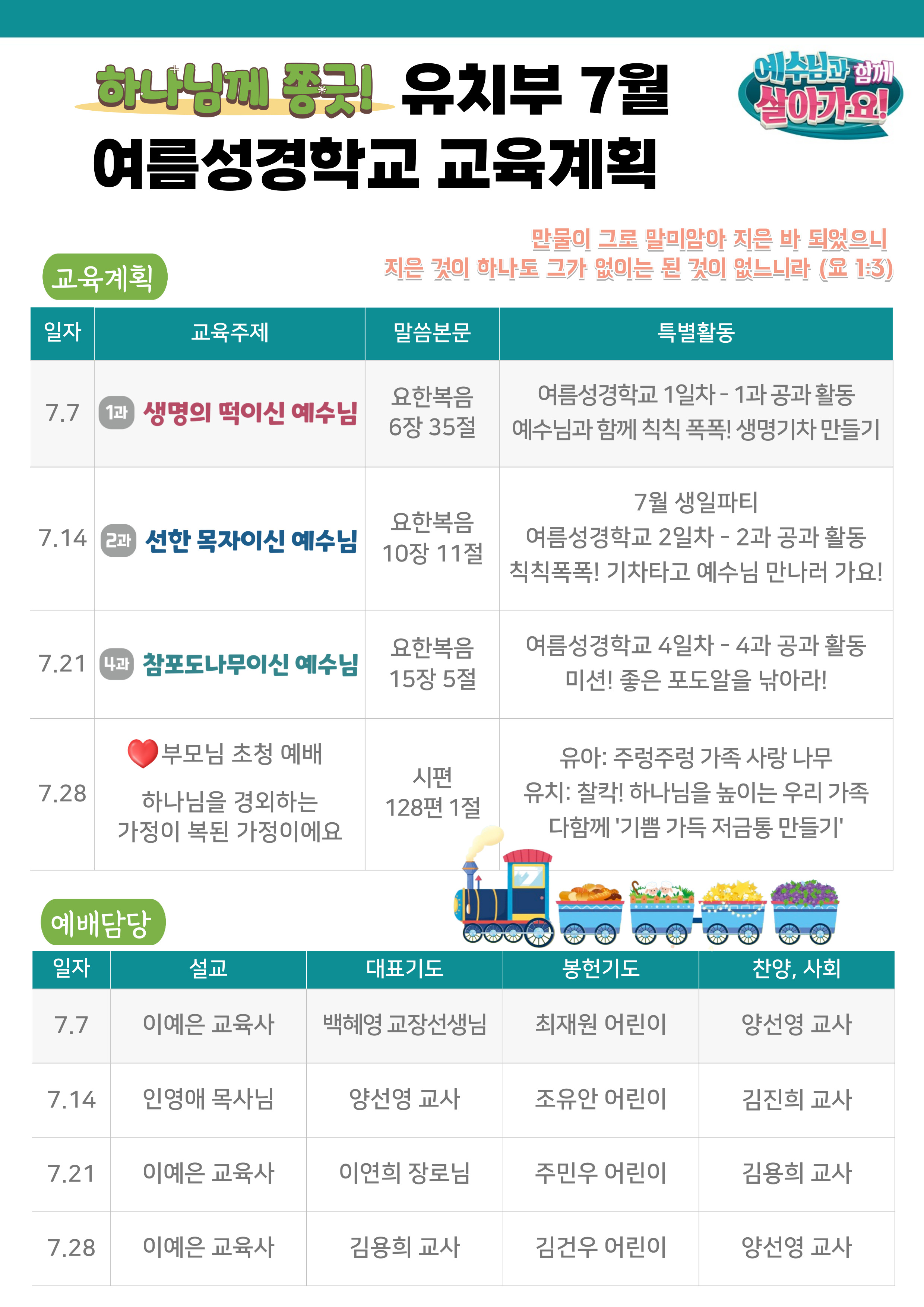 유치부 7월 교육계획