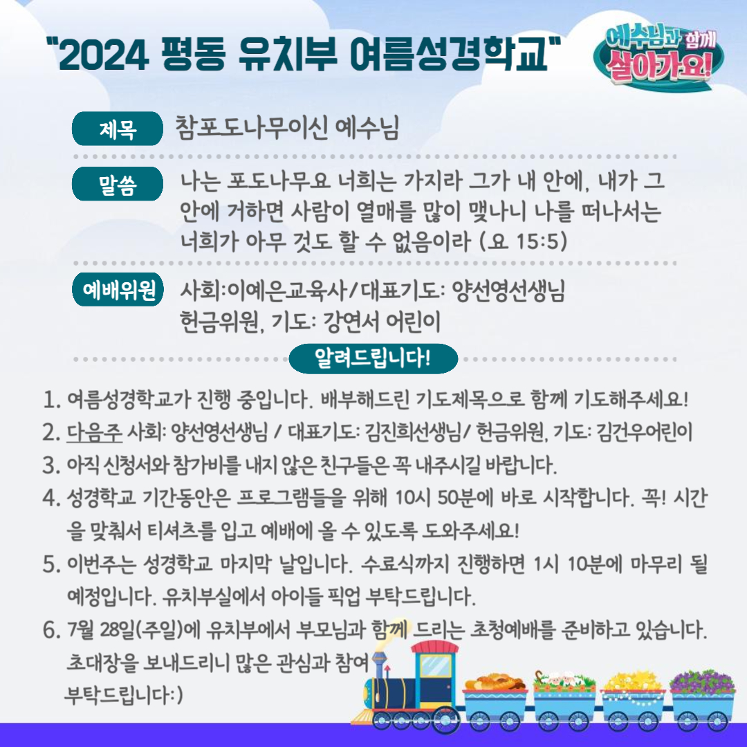 2024.07.21 유치부 여름성경학교 네번째날